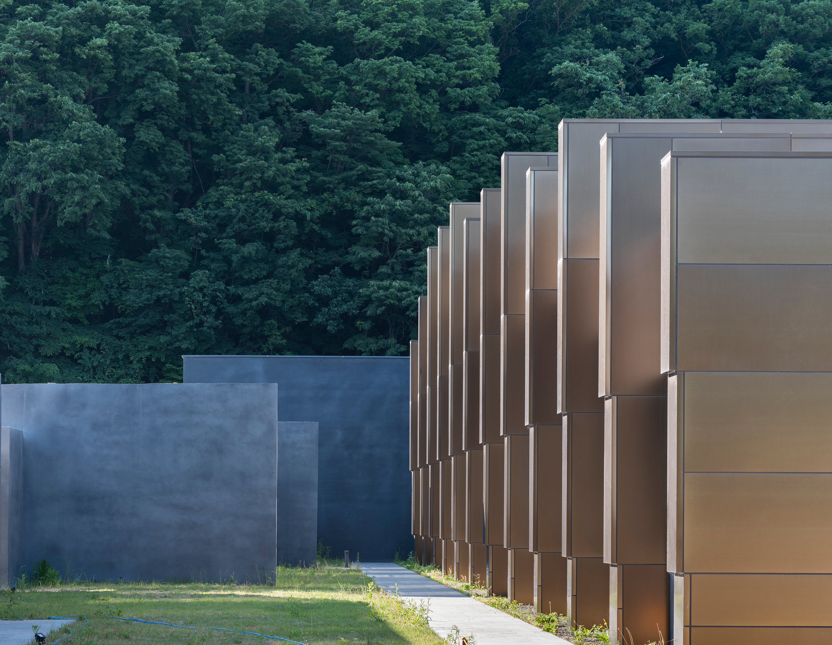 The new Information Center should be located behind the existing one. But after the existing information center was demolished, the newly built information center was more relieved against the background of sheer rock cliffs, and it was also designed to become the first thing the visitors could notice when they enter. Since the site is rather large compared to the area of the building, it was possible to combine several buildings consisting of one floor. This allows it to play its role in a given place without disturbing not only the nature surrounded like a folding screen, but also neighboring residential buildings.