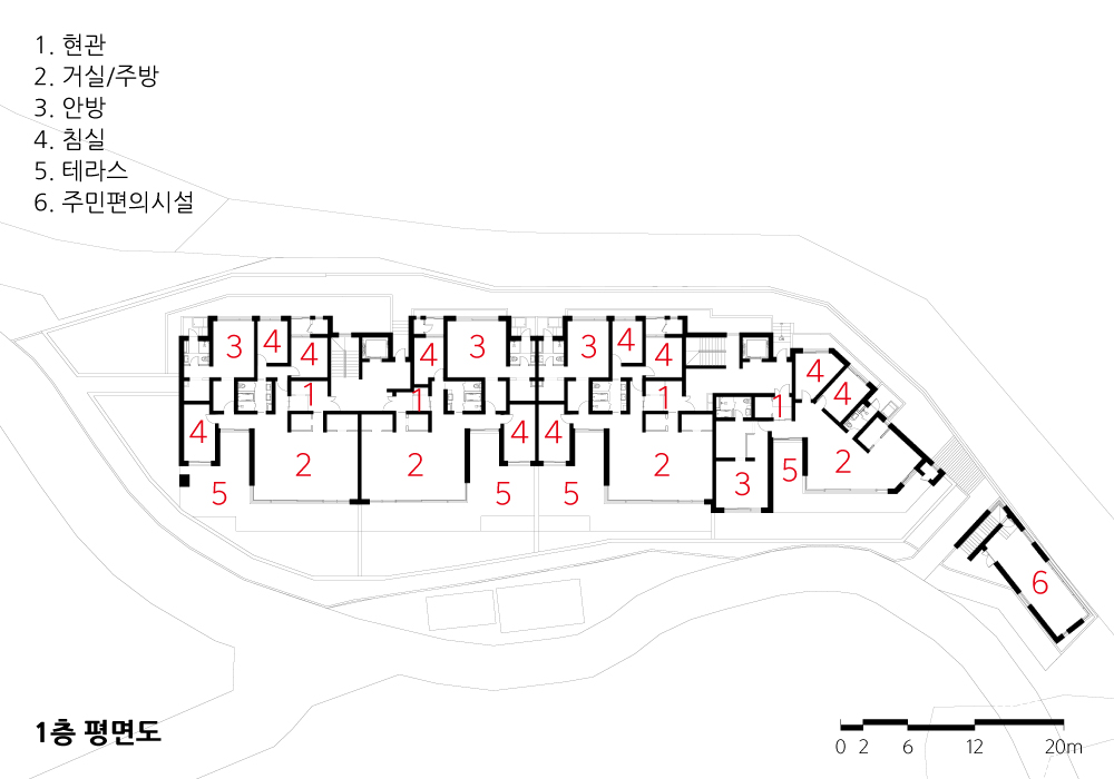 In addition, by opening auxiliary facilities (gym, small library, etc.) created on the actual ground floor, it was designed to be not a community only for residents who are disconnected from outsiders, but an environment that can naturally permeate into the village through a relaxing community that increases the frequency of contact between villagers and residents.