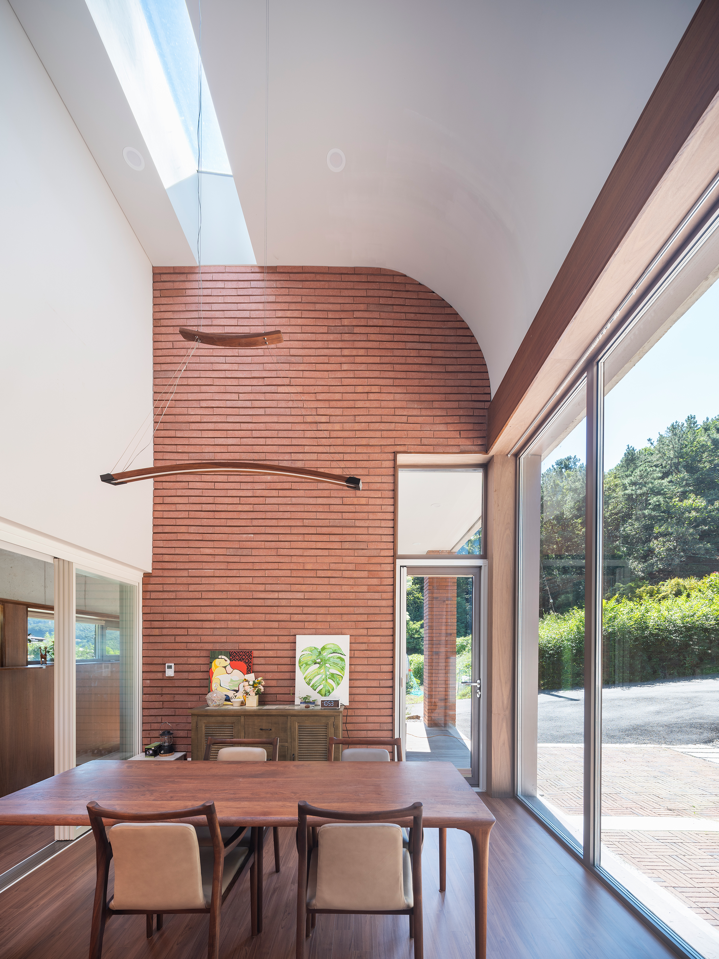 SODAMJAE_Pocheon House Architect | Yoon, Geunju _ 1990uao Client | Woo, Hyunju Supervisor | Yoon, Geunju _ 1990uao Construction | Gong Design Project team | Min, Kyunghuyn / Park, Jinyoung Design intention realization | Location | 49, Jungang-ro 405beon-gil, Sinbuk-myeon, Pocheon-si, Gyeonggi-do, Korea Program | House Site area | 873.00㎡ Building area | 165.13㎡ Gross floor area | 150.63㎡ Building to land ratio | 14.75% Floor area ratio | 13.45% Building scope | 1F Structure | RC Exterior finishing | Brick Interior finishing | Exposed concrete, Tile, Solid hardwood floor Design period | Aug. 2020 – Dec. 2020 Construction period | Mar. 2021 – Oct. 2021 Photograph | Namgoong, Sun Structural engineer | Eden Structure Consultant |