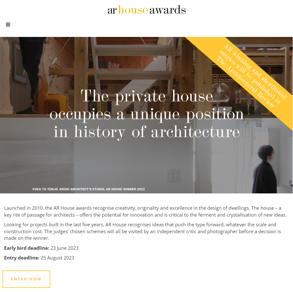 미국 The architectural review에서 주관하는 주택 관련 건축상이다. 규모 관계 없이 최근 5년 내(2018년 1월 이후) 준공작을 대상으로 한다.(단, 대형 하우징 블록-Large housing blocks-은 해당 없음) 온라인을 통해 접수할 수 있으며, 올해 출품작 제출 마감일은 2023년 8월 25일(얼리버드 마감 6월 23일)까지다. 최종심에 오른 6개 프로젝트는 <The Architectural Review> 2023년 12월/2024년 1월호에 소개된다.