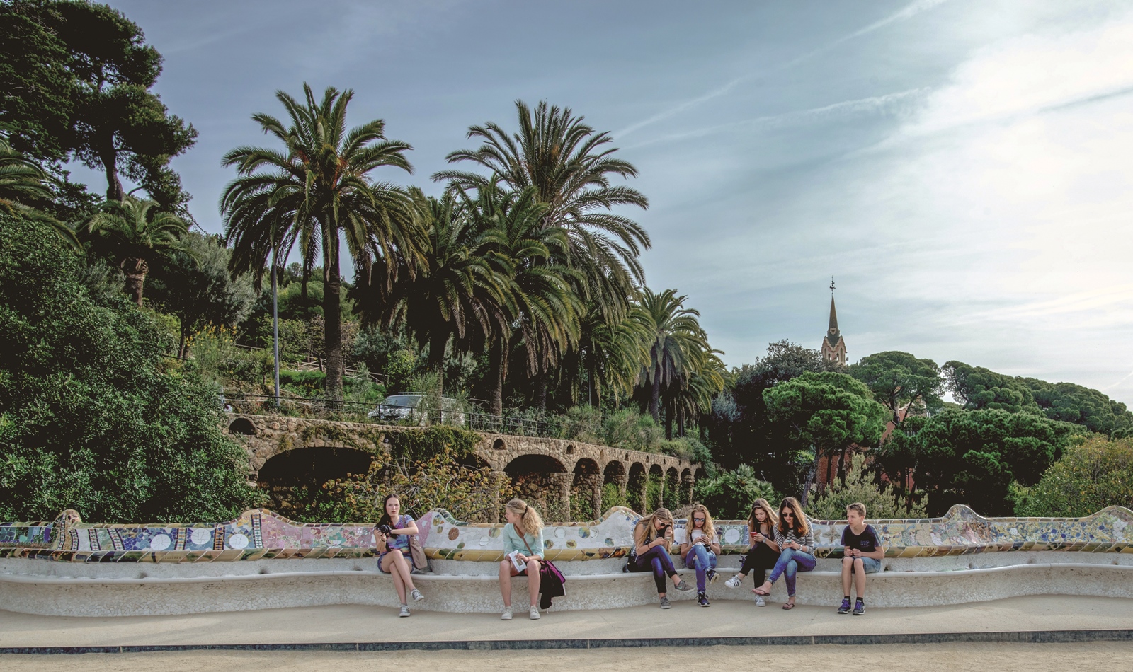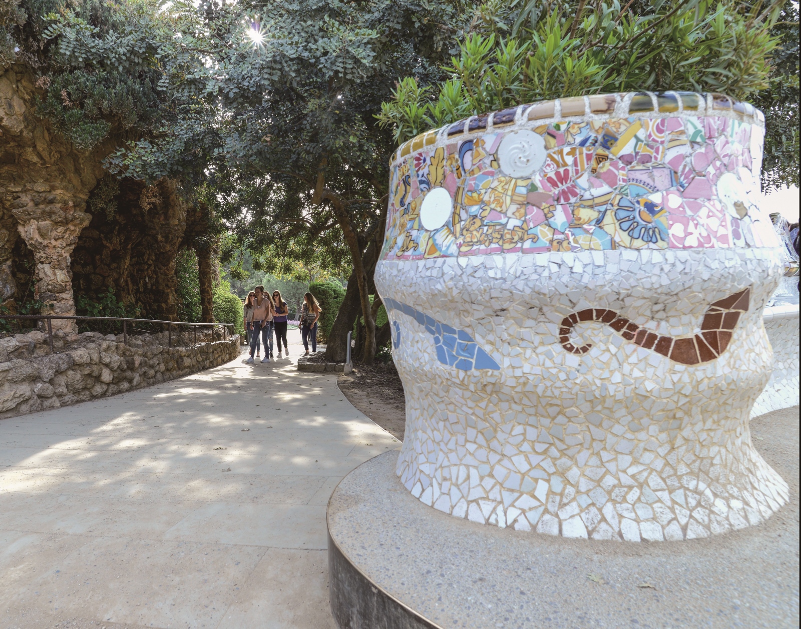 야자수를 닮은 돌기둥과 벤치에 새겨진 모자이크에는 모두 그의 열정이 서려 있으며, 모자이크가 돋 보이는 구엘 공원의 도마뱀 상은 이방인들에게는 촬영 포인트로 인기가 높다.