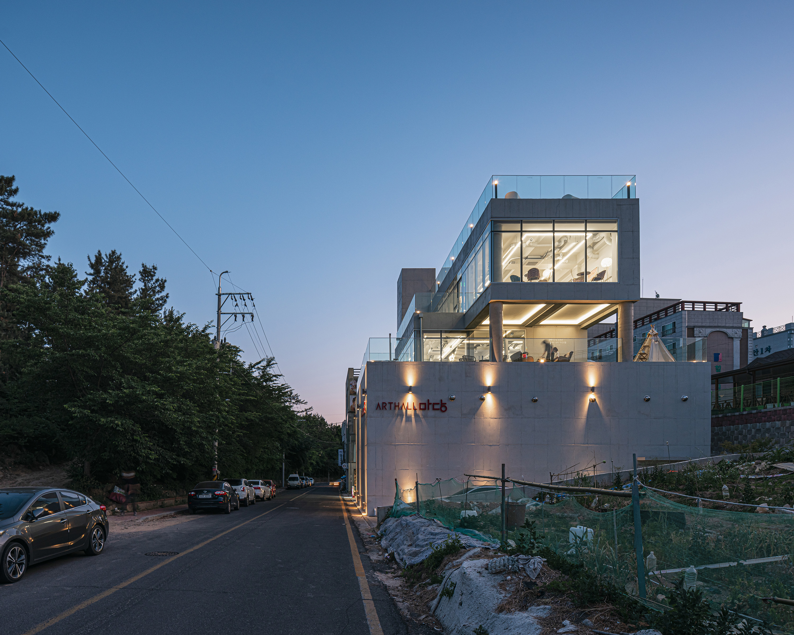 Arthall Madang Architect | Ko, Youngju _ ROM architects & planners Client | Theatrical production studio, Madang Supervisor | MPT architect Co., Ltd. Construction | GM Construction Co., Ltd. Project team | Kim, Imju / Yoon, hyejin Design intention realization | ROM architects & planners Location | 101, Seongan 1-gil, Jung-gu, Ulsan, Korea Program | Neighbourhood living facility(Theater, office ,cafe) Site area | 655.50㎡ Building area | 375.21㎡ Gross floor area | 898.75㎡ Building to land ratio | 57.24% Floor area ratio | 137.11% Building scope | 4F Structure | RC Exterior finishing | Exposed concrete Interior finishing | Exposed concrete, Water paint on gypsum board, Concrete Policing Design period | Dec. 2020 - Mar. 2021 Construction period | Apr. 2021 - Nov. 2021 Photograph | Yoon, Dong-gyu Structural engineer | Haicon Structural Engineering Co., Ltd. Mechanical engineer | Top ENG Co., Ltd. Electrical engineer | Top ENG Co., Ltd. Fire engineer | Top ENG Co., Ltd. |