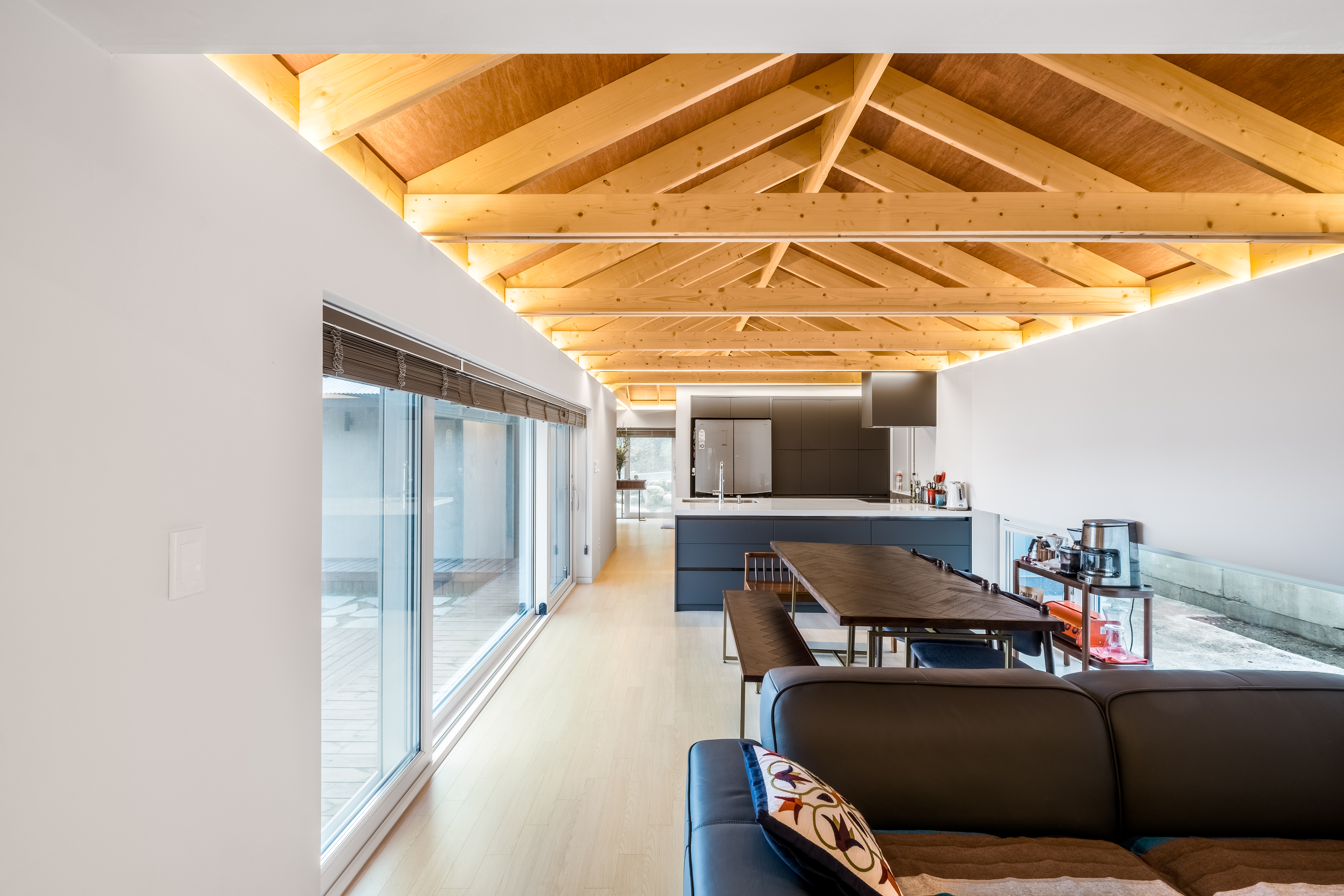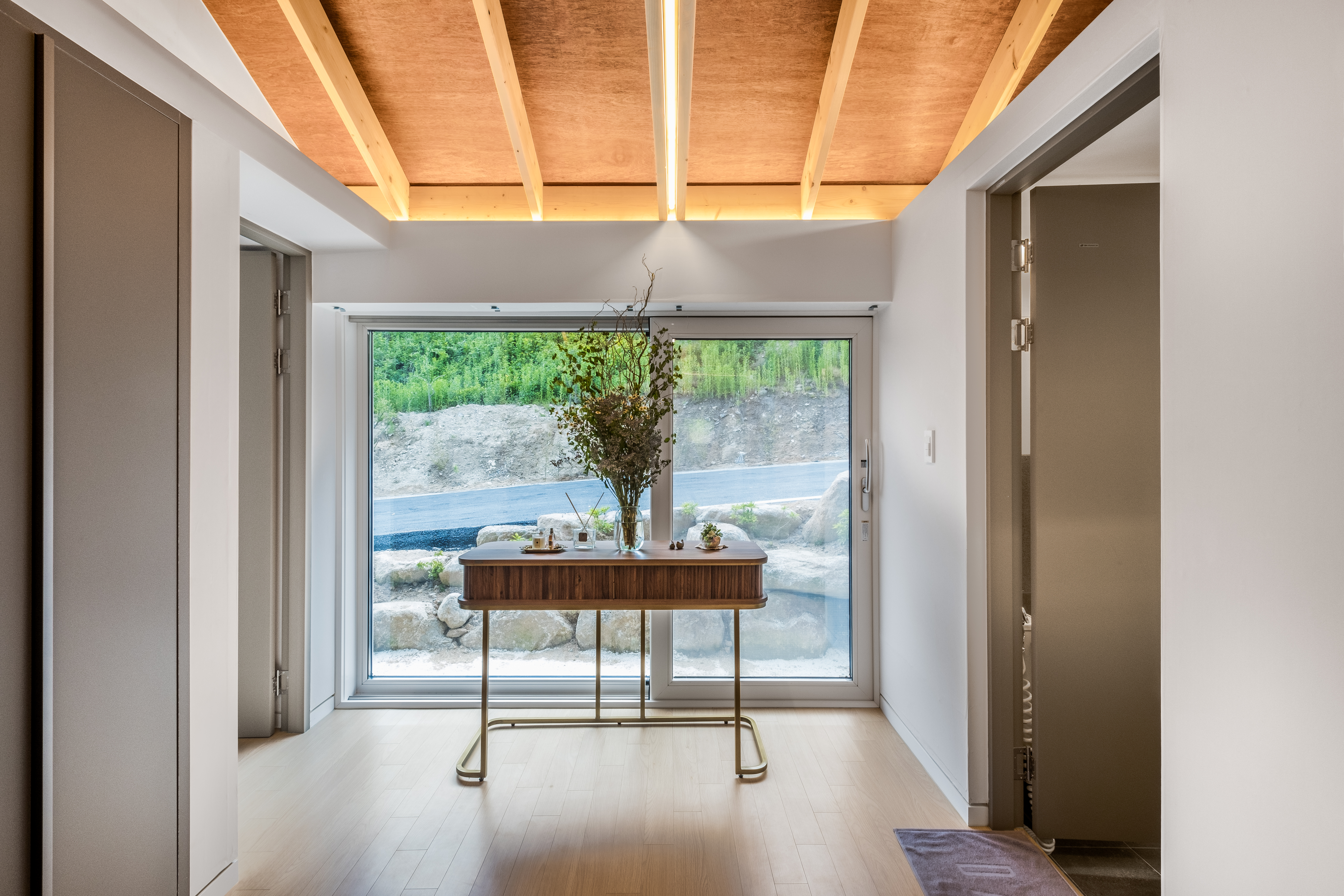 Yard _ "The courtyard is situated on a sloping terrain, so it's a windy area, but once you step into the courtyard, the wind doesn't reach you, and it feels incredibly comfortable. We were initially concerned about the lack of a front gate and fences, but surprisingly, it gives us a sense of protection. The neighboring house's lower roofline allows for unobstructed views, so it doesn't feel cramped either." This was the response from one of the homeowners after moving in. Although all six houses have integrated the courtyard with the living room, each household uses it differently. It serves as a gathering place with a deck, a garden with a pond or a grassy yard, and a serene spot with a beautiful tree. The people living in the houses fill them with their lives. Imagining how the same empty space can be filled differently is truly enjoyable.