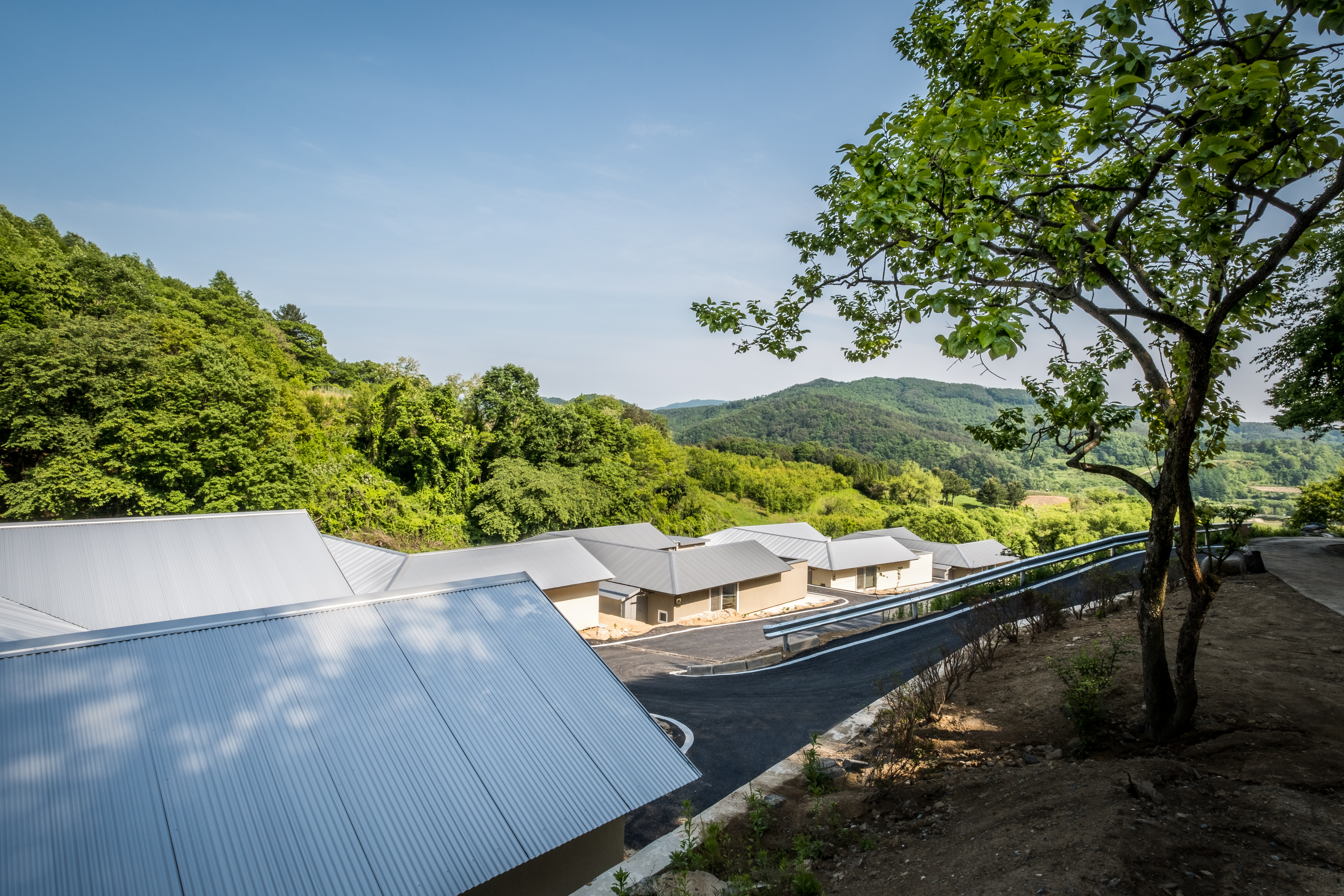귀농 농업인 주택 Architect | Lee, Daewoo _ LEEDAEWOO architects Client | Heo, Seogu / Heo, Jongmoon / Han, Myeongjae / Park, Jaehong / Lee, Boan / Kim, Jonghak / Park, Geonnam / Yu, Sujin Supervisor | Lee, Daewoo _ LEEDAEWOO architects Construction | M Architecture Design intention realization | LEEDAEWOO architects Location | Bonghwang-gil, Seongsu-myeon, Jinan-gun, Jeollabuk-do, Korea Program | Single family house Site area | 2,223.00㎡ Building area | 476.69㎡ Gross floor area | 476.69㎡ Building to land ratio | 21.44% Floor area ratio | 21.44% Building scope | 1F Structure | Light weight wood frame Exterior finishing | Terraco, Corrugated steel plate Interior finishing | Silk wallpaper, Domestic plywood Design period | Jan. 2019 - Jun. 2019 Construction period | Aug. 2019 - Jan. 2020 Photograph | Joel Moritz / Kim, Dongkyu |