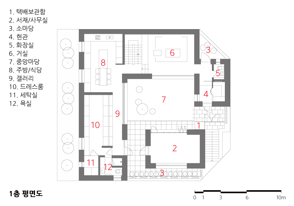 ‘늘 햇빛이 가득한 회랑이 있는 집’이라는 건축주가 지은 이름처럼, 해가 가득차는 중정을 비롯한 정원 곳곳에 생명의 에너지가 가득차기를 기대한다.