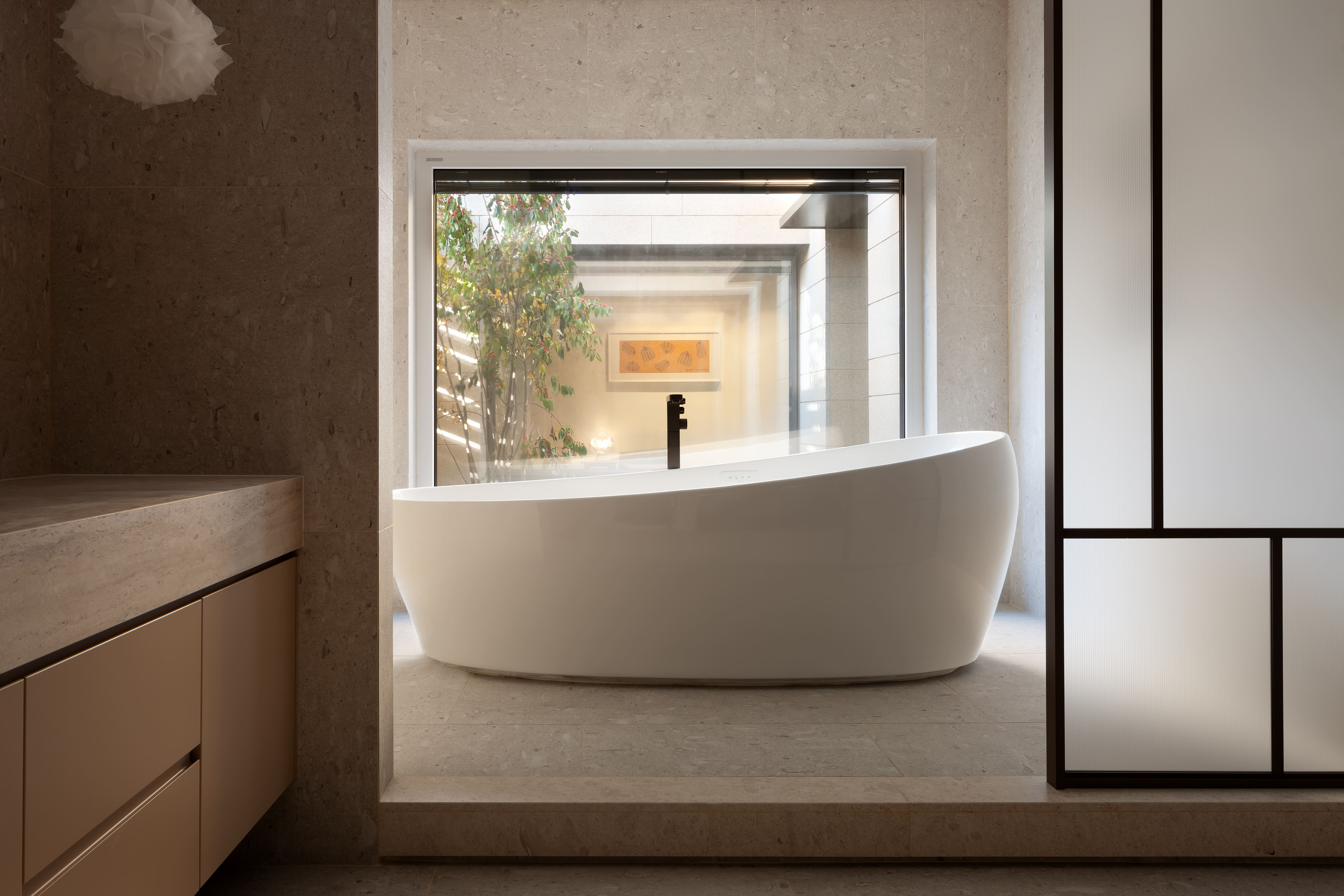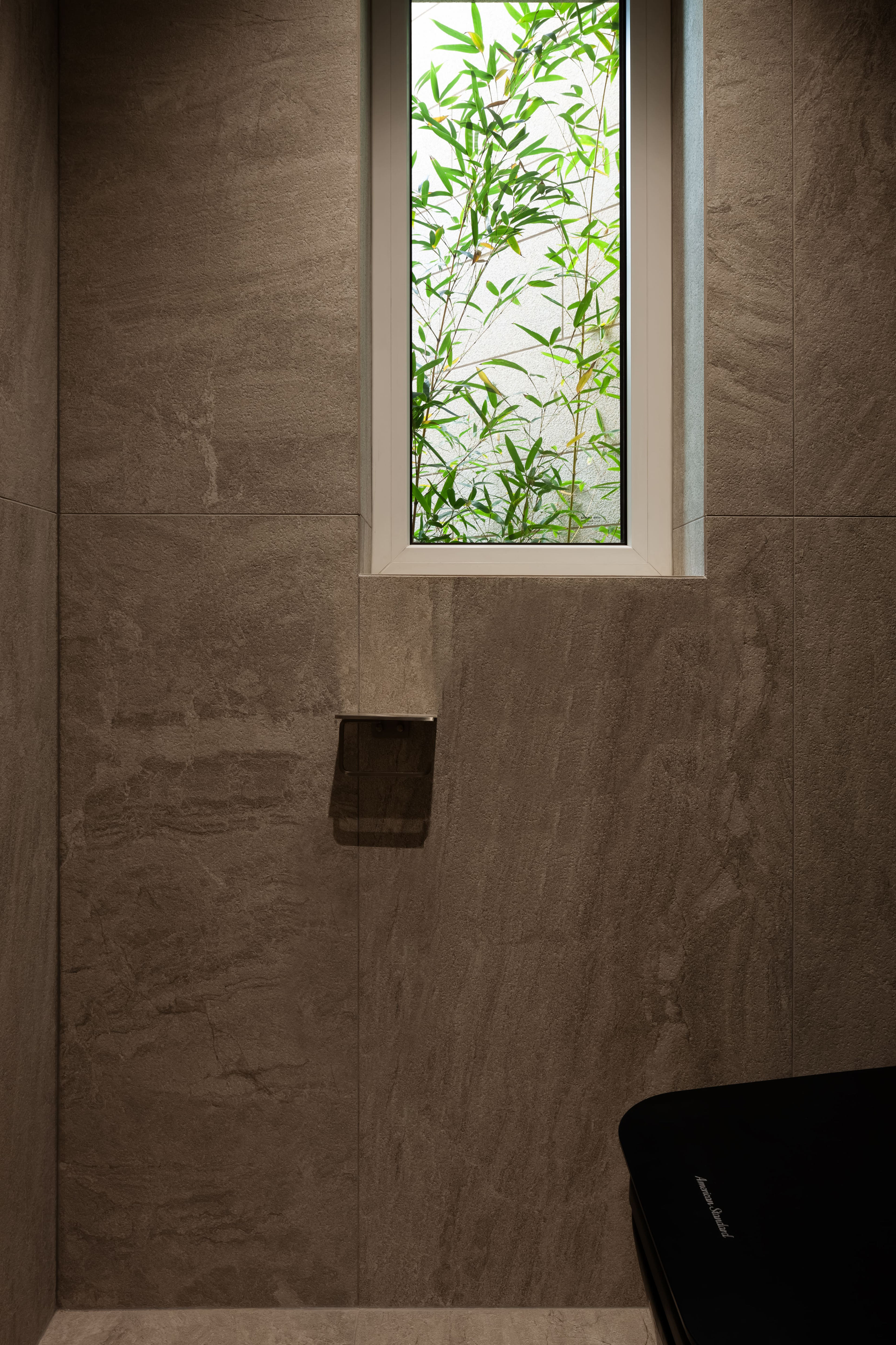 In addition, with the increase in time spent at home during the digital age, small gardens are placed throughout the building to provide varying degrees of natural light, acoustics, and ventilation. The different shades of light that the small gardens bring into the home provide an important element that enriches the atmosphere of the house. The family bathroom on the second floor is designed to be a space for relaxation and healing, while still fulfilling its basic function of hygiene, with a rich natural environment.