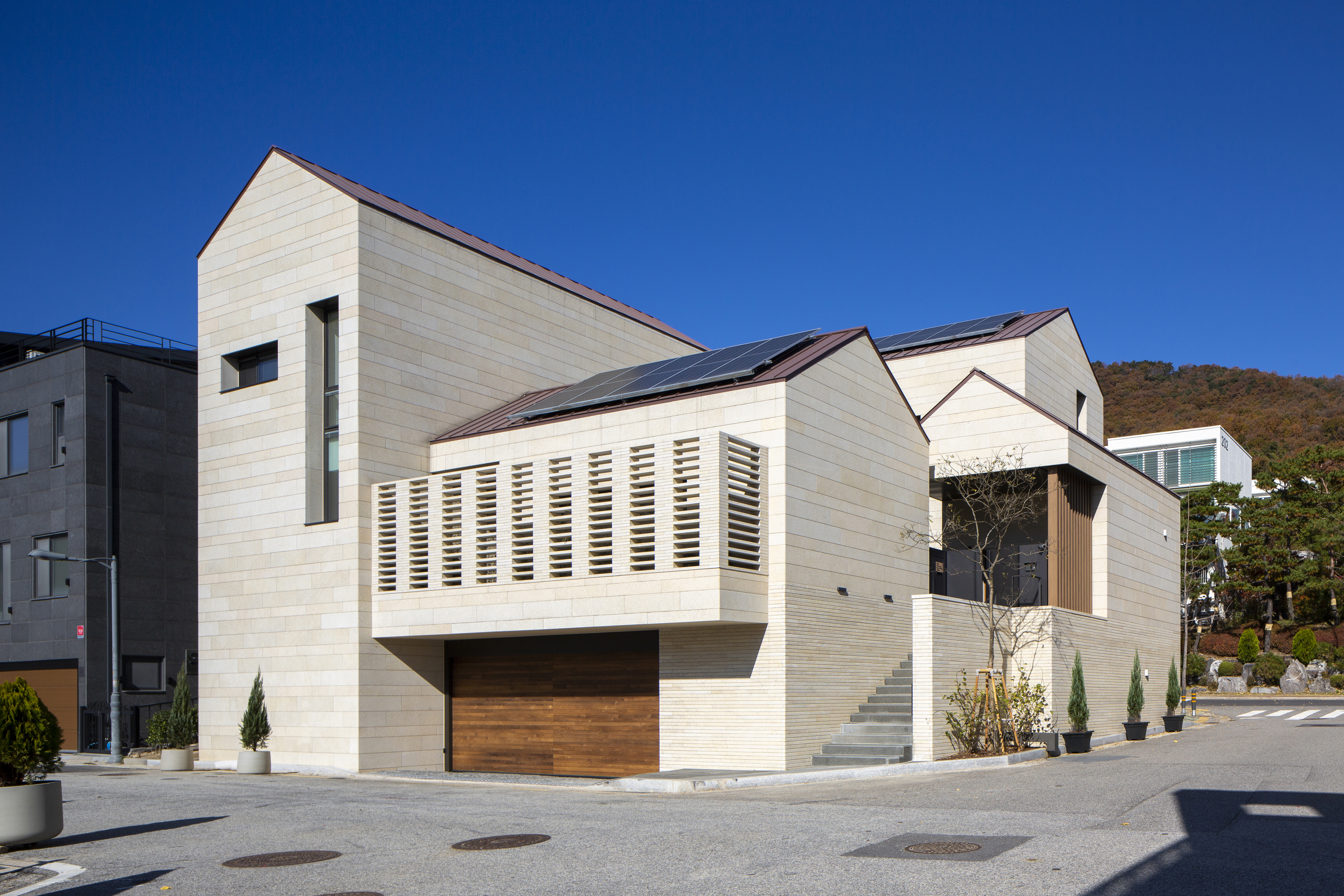 A bright and strong person who always lives with the sun Architect | Kwon, Jaehee _ Friday Architects Client | Kang, hochang / Jeon, yujin Construction | Hosan Location | Unjung-dong, Seongnam, Gyeonggi-do, Korea Program | House Site area | 338.50㎡ Building area | 166.43㎡ Gross floor area | 443.15㎡ Building to land ratio | 49.17% Floor area ratio | 68.14% Building scope | B1F - 2F Structure | RC Exterior finishing | Granite Stone Interior finishing | Water paint finish above gypsum board Design period | Feb. 2021 - Aug. 2021 Construction period | Sep. 2021 - Aug. 2022 Photograph | Park, Youngchae Structural engineer | Dawoo Mechanical engineer | hangil Electrical engineer | hangil |