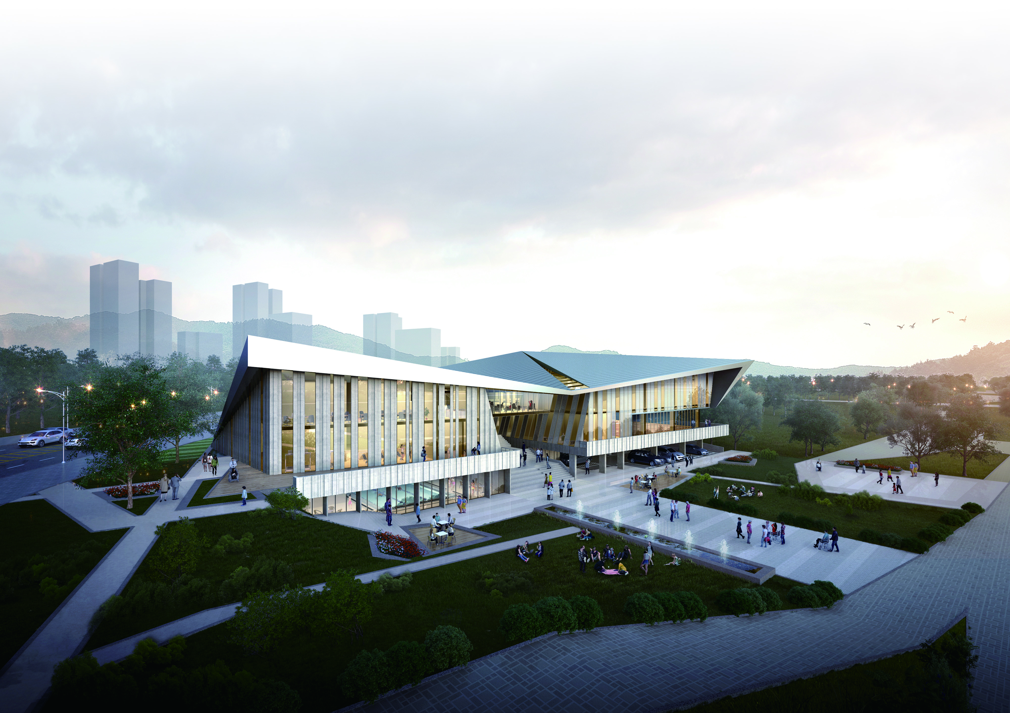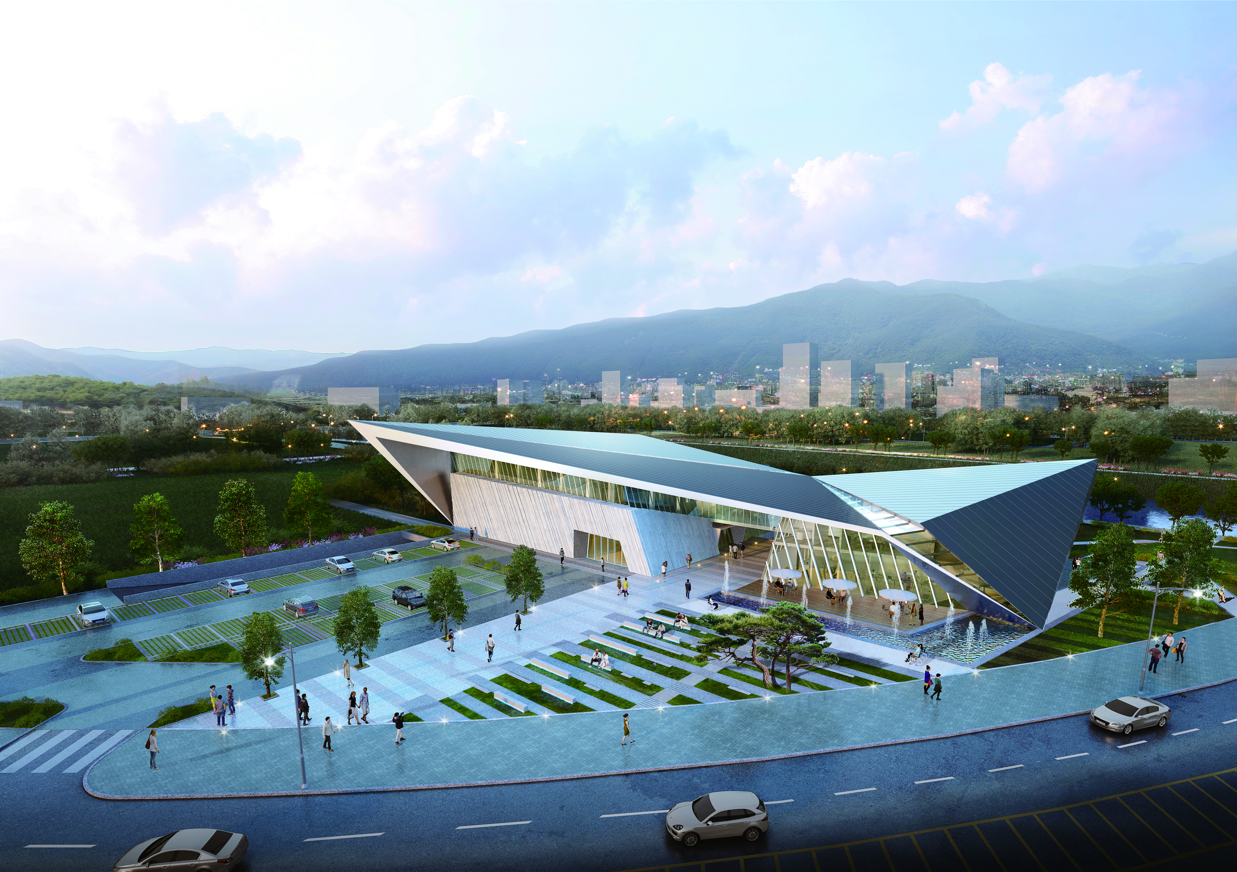사업부지 주변의 다양한 도시 축선을 입체적으로 해석하여, 한옥의 처마선 및 한글의 자음 ‘ㅅ’ 등을 의미 하는 비정형 입면 디자인으로 체육시설의 역동적인 특성을 반영했다.