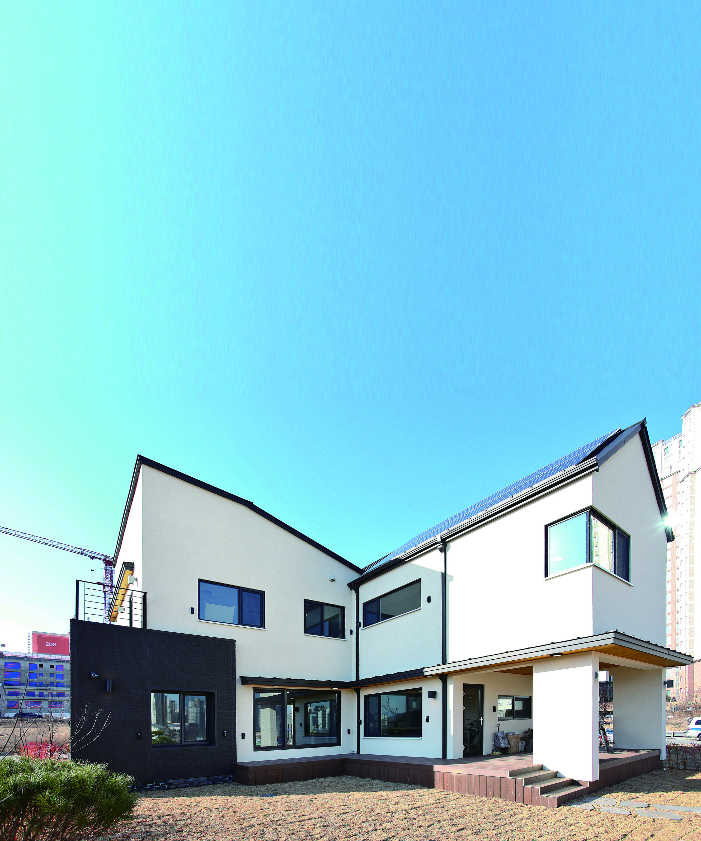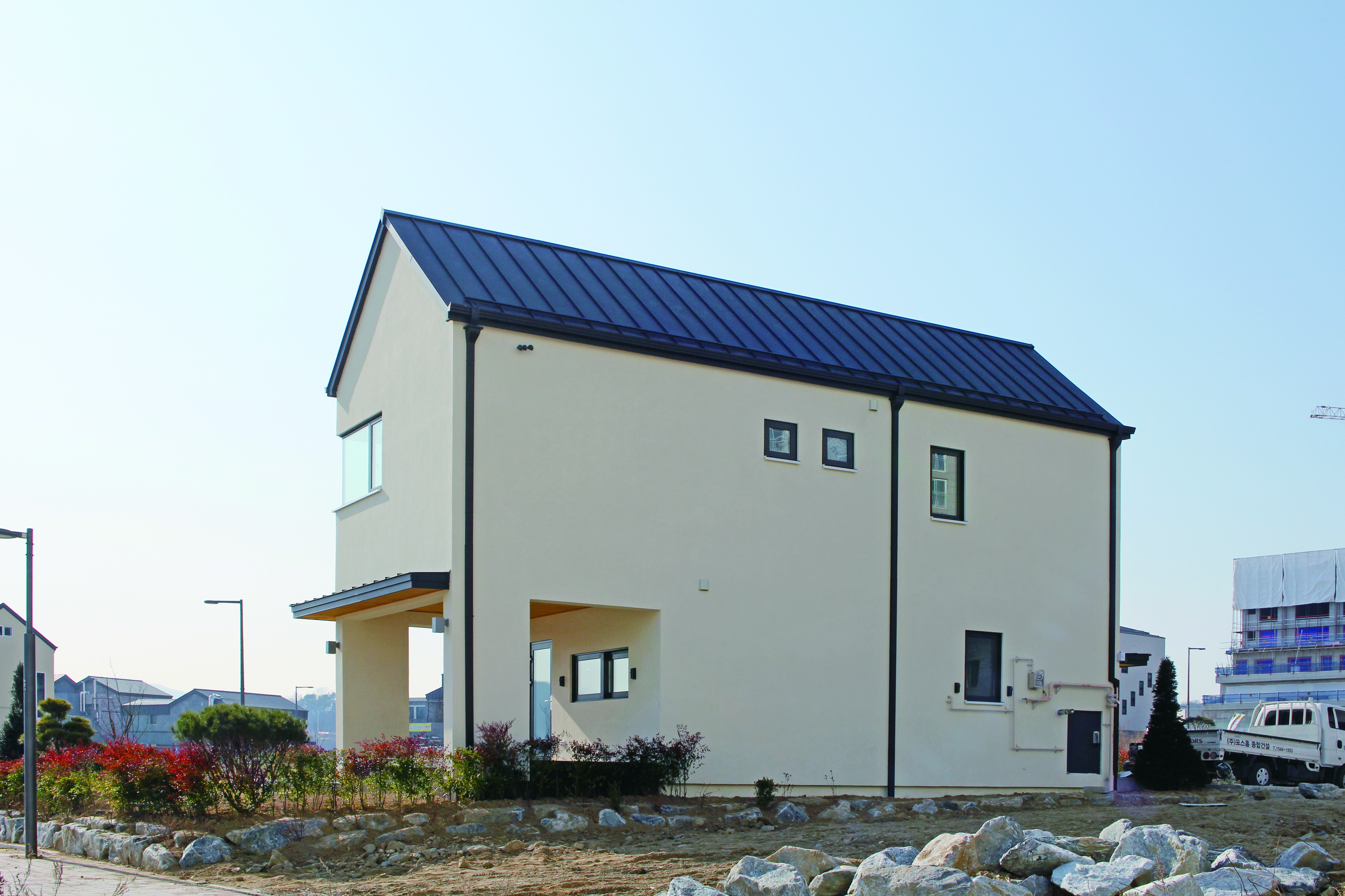 우선 내부공간은 합치고 창문을 크게 내어 개방감을 확보하는 방식이 아닌 공간을 나누어 다양 한 공간을 만드는 방식을 택했다. 공간마다 변화가 있고 같은 면적의 방도 창문의 크기와 위치 가 달라 다른 풍경을 끌어들인다. 앞마당과 뒷마당, 포치와 테라스는 다양한 외부공간을 만들어 하나의 큰 정원보다 더 많은 형태를 담을 수 있다. 입면은 박공지붕과 외경사지붕, 작은 평지붕 으로 구성된 3개의 매스를 결합시켜 보는 각도에 따라 다양한 표정을 만들어 낸다. 가족은 내외 부의 다양한 공간을 느낄 수 있는 단독주택에서 풍성한 삶을 살아간다.