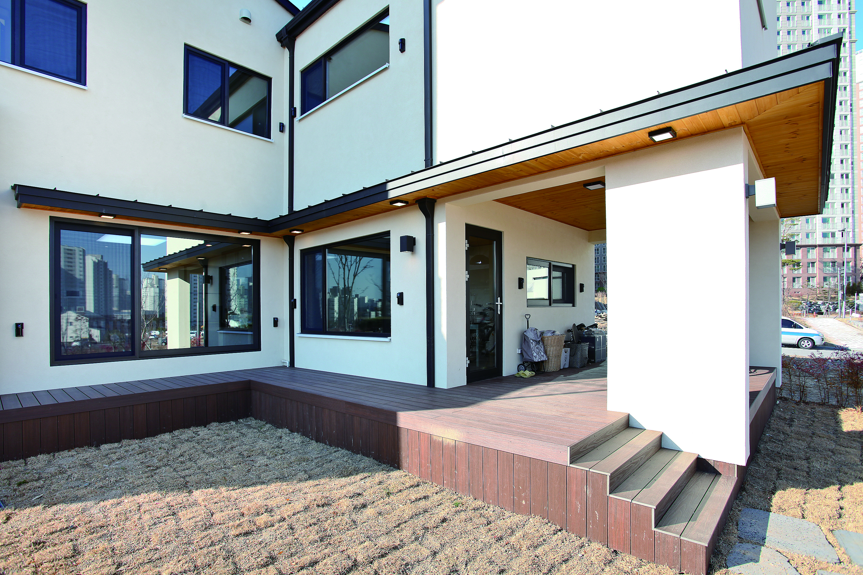 | 상대동 협소주택, 더테라스 설계자 ┃선상희 _ SUP 건축사사무소 건축주 | 장택진 감리자 | 선상희 _ SUP 건축사사무소 시공사 | (주)포스홈종합건설 설계팀 | 이선환 대지위치 | 세종특별자치시 고운동 만남로6길 9-6 주요용도 | 단독주택 대지면적 | 339.10㎡ 건축면적 | 96.32㎡ 연면적 | 186.02㎡ 건폐율 | 28.40% 용적률 | 54.86% 규모 | 지상 2층 구조 | 스틸하우스 외부마감재 | 에어폴 외단열 시스템, 그레뉼 세라믹 사이딩, VM징크 내부마감재 | LG하우시스 벽지, 한화 강마루, 자기질 타일 설계기간 | 2016. 04 ~ 2016. 09 공사기간 | 2016. 10 ~ 2017. 01 사진 | 월간 전원주택라이프 기계설비분야 : 에이스엔지니어링 전기분야 : 에이스엔지니어링 |