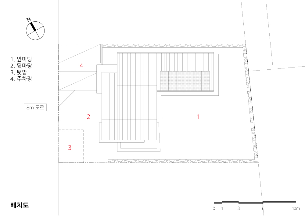 이런 답답함에서 벗어나고자 세 자녀를 둔 부부는 도로와 공원에 접해있는 대지를 마련하고 설 계를 의뢰했다. 건축주는 넓은 면적과 큰 창문이 아니더라도 아늑하면서도 답답하지 않은 공간 을 원했다.