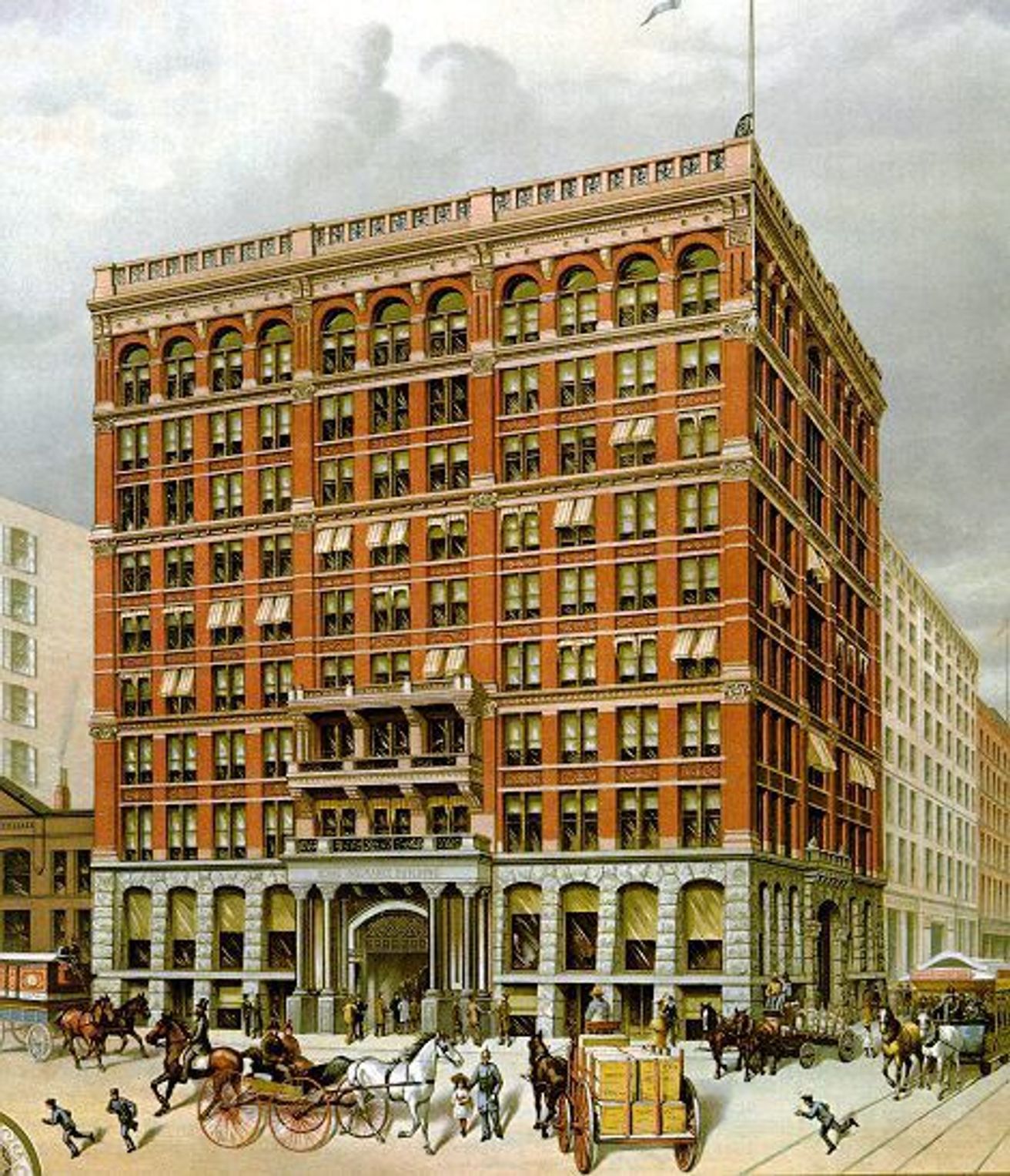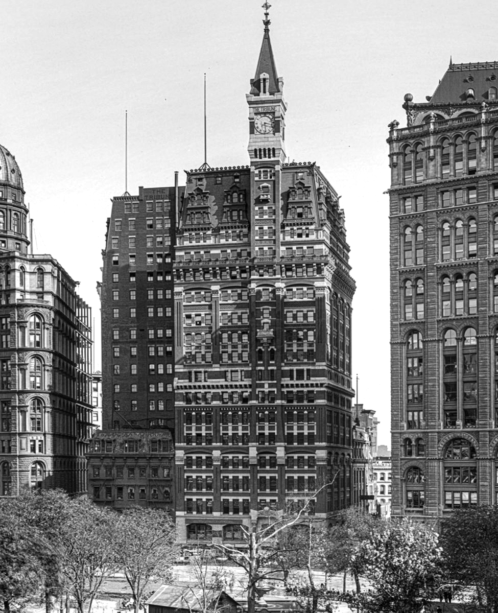 뉴욕의 초기 마천루 건물인 뉴욕 트리뷴 빌딩은 1875년에 10층 건물로 완공되었고, 그 뒤 증축하여 19층이 되었다.<사진 2> 이 건물의 외관은 설리번이 지적한 잡스러운 모음의 전형적인 사례일 것이다. 1층부터 최고층 탑까지, 칼럼, 코니스, 덴틸, 필라스터, 망사르 지붕, 스파이어에 이르기까지 정말 수많은 고전적 양식과 모티프들의 전시장이 되었다. 시카고에 건설된 최초의 철골 마천루인 홈 인슈어런스 빌딩도 마찬가지다.<사진 3> 칼럼과 필라스터, 코니스는 물론 포치, 러스티케이션, 피아노 노빌레, 발루스터 같은 고전 어휘들이 눈에 띈다. 이 건물을 디자인한 윌리엄 르 배런 제니는 나중에 장식이 없는 진보적인 마천루를 디자인하지만, 초기에는 이처럼 고전적 어휘들을 구사했다. 이것은 새로운 개념의 사물을 만드는 과정에서 반드시 거치는 통과의례 같은 것이다. 자동차가 마차를 모방하고, 라디오나 TV가 가구를 모방하는 것처럼 철골 마천루 역시도 스스로 새로운 개념의 건축이 아니라 기존의 친숙한 건축처럼 보이려고 한 것이다. 보수적인 대중에게 새로운 건물이 아니라고 안심시키려는 것이다.