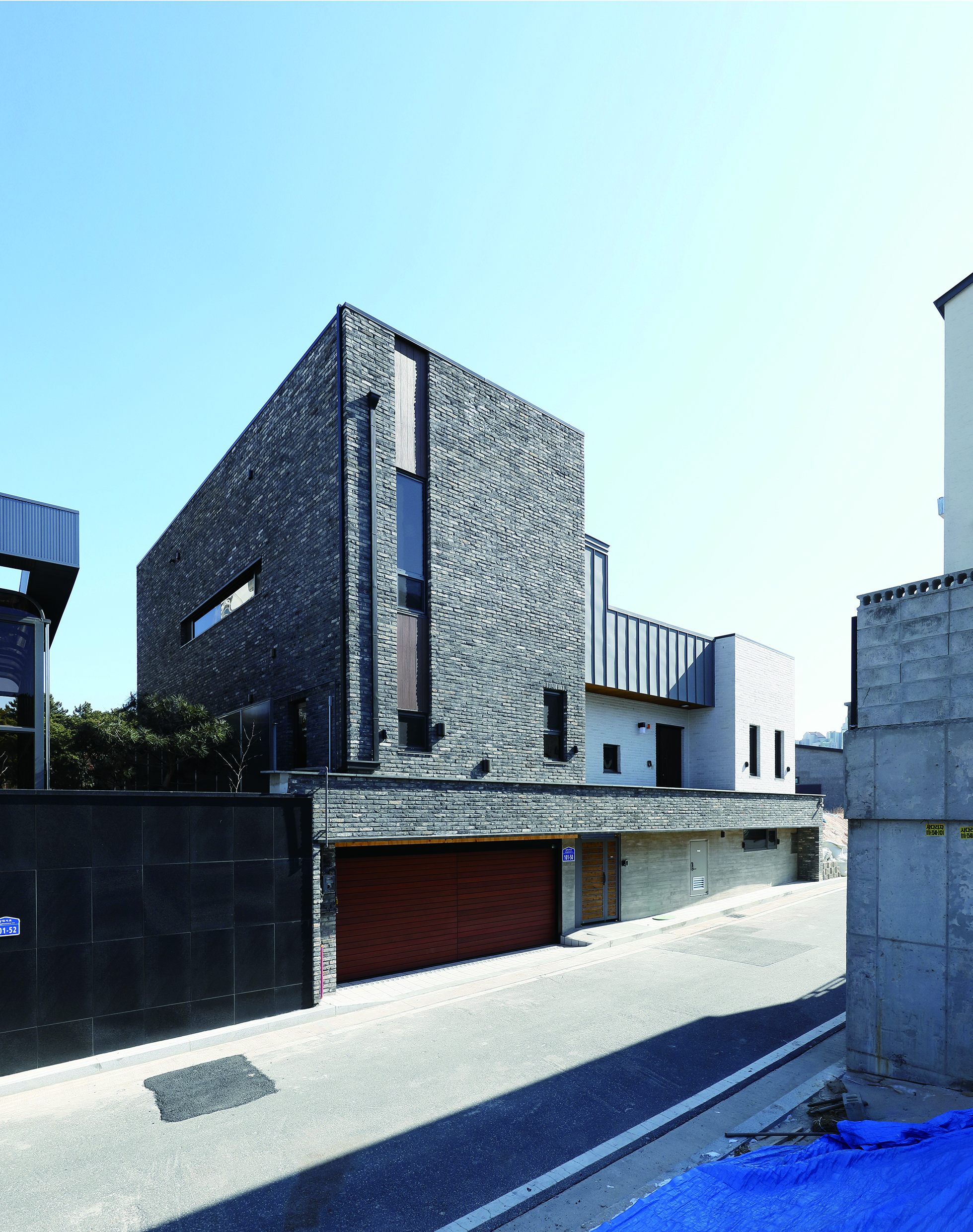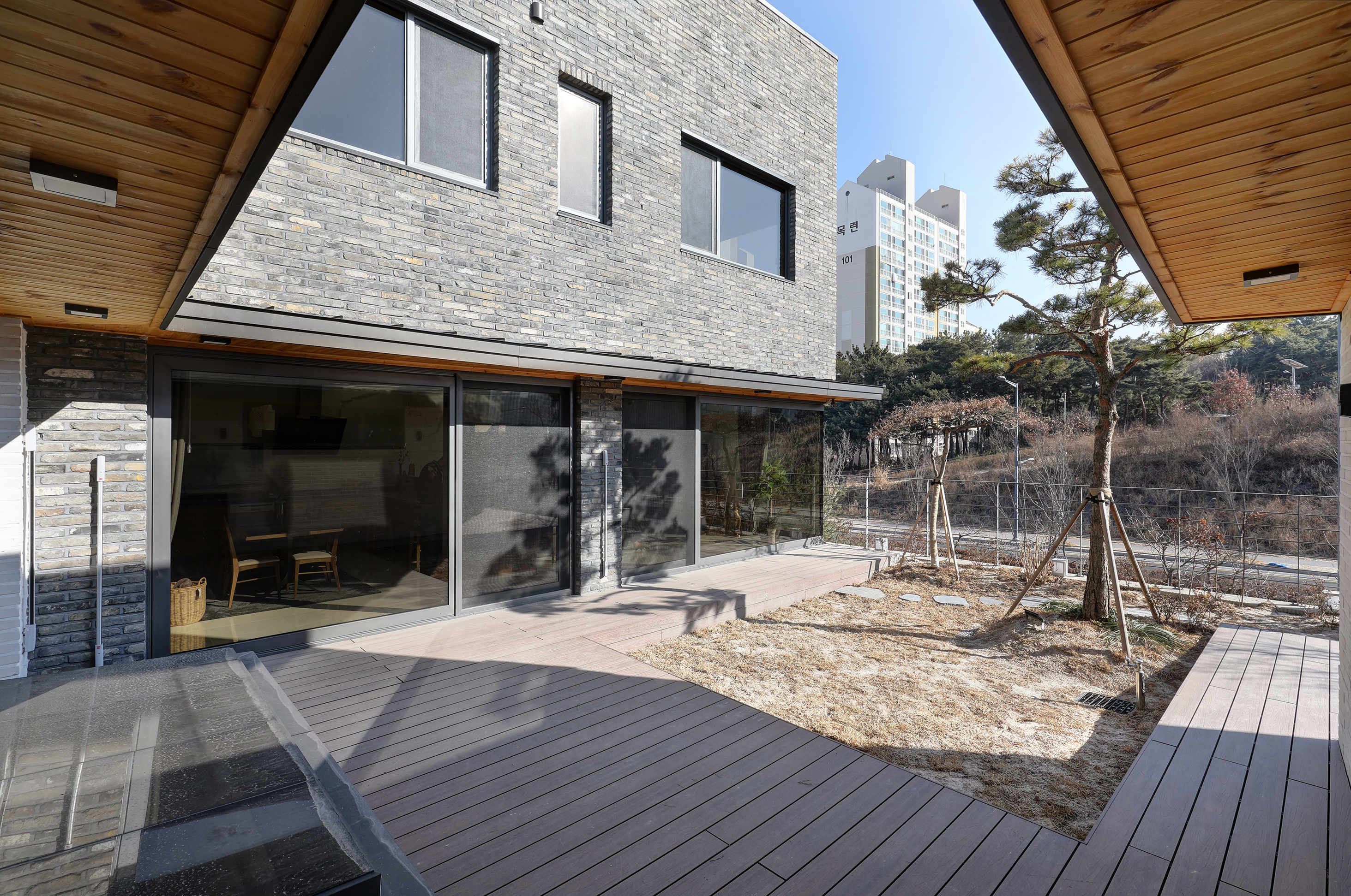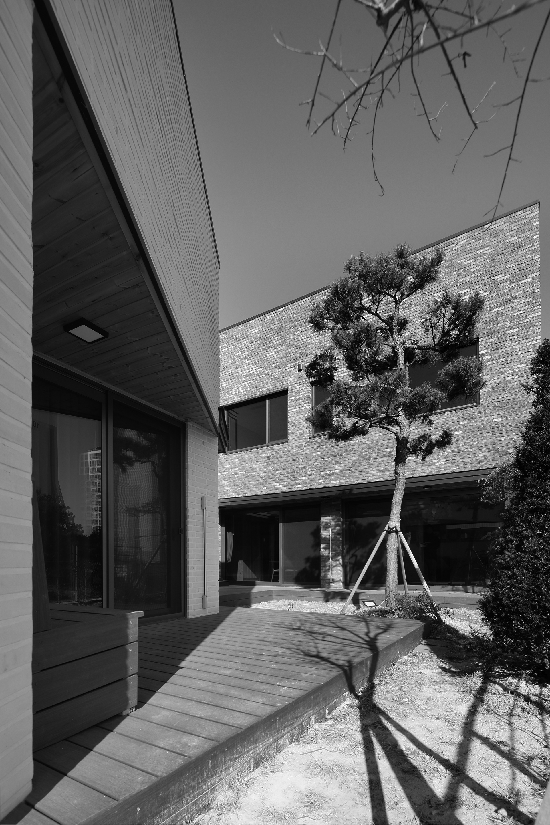 House with a gardenArchitect Architect | Kim, Yunhwan _ Masterpiece Architecture Client | Cho, Jongcheol / Lee, Bunsam Supervisor | Kim, Yunhwan _ Masterpiece Architecture Construction | Poshome construction Co., Ltd. Location | 101-50, Sangdaeseo-ro, Yuseong-gu, Daejeon, Korea Program | Detached house Site area | 282.90㎡ Building area | 140.86㎡ Gross floor area | 383.45㎡ Building to land ratio | 49.79% Floor area ratio | 78.87% Building scope | B1F - 2F Structure | Steel structure(Steel house) Exterior finishing | Wall - Brick, Exposed concrete with wood texture, AL window(EAGON) / Roof - POS-MAC Interior finishing | Floor Marble, Wood floor(EAGON) Design period | Feb. 2017 ~ May. 2017 Construction period | May. 2017 ~ Oct. 2017 Photograph | Byun, Jongseok Mechanical engineer | Dongho Equipment Electrical engineer | I-il Electrical Fire engineer | Dongho Equipment, I-il Electrical |