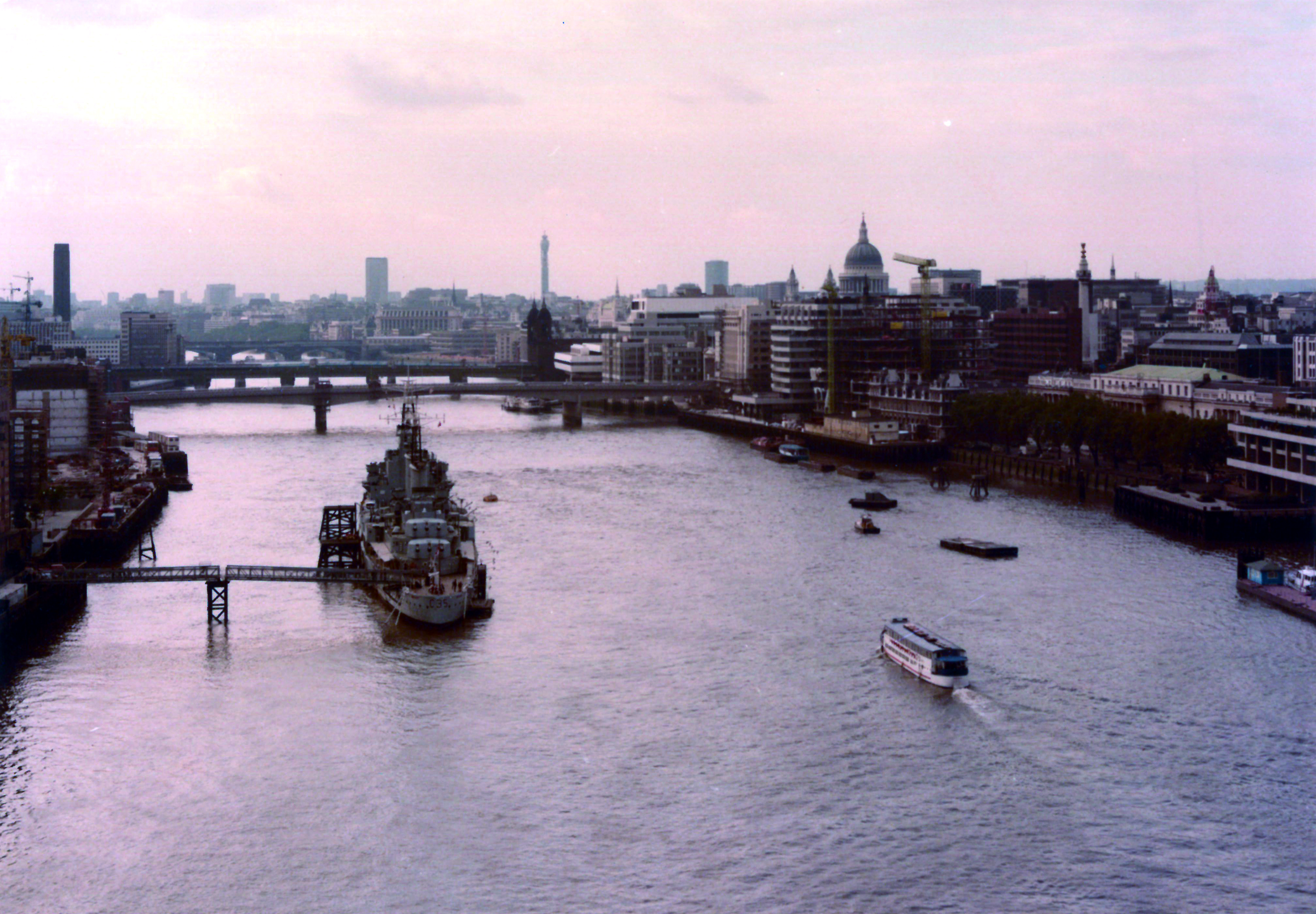 대영박물관의 미라(The Mummy)와의 조우는 아직 이집트를 가보지 못한 나로서는 매우 신기하게 느껴져 먼 과거 속으로 여행을 떠나는 환상에 젖게 하였다. 템스강에 대한 첫인상은 더럽기 그지없는 큰 장마후의 강을 보는 듯했다. 이런 강에선 한강에서의 수상스키나 윈드서핑은 상상도 못할 것 같았다. 노래에 나오는 런던브릿지의 엘리베이터를 타고 올라가서 인도교 다리를 건너 보았다. 템스강의 전경이 한눈에 들어온다.