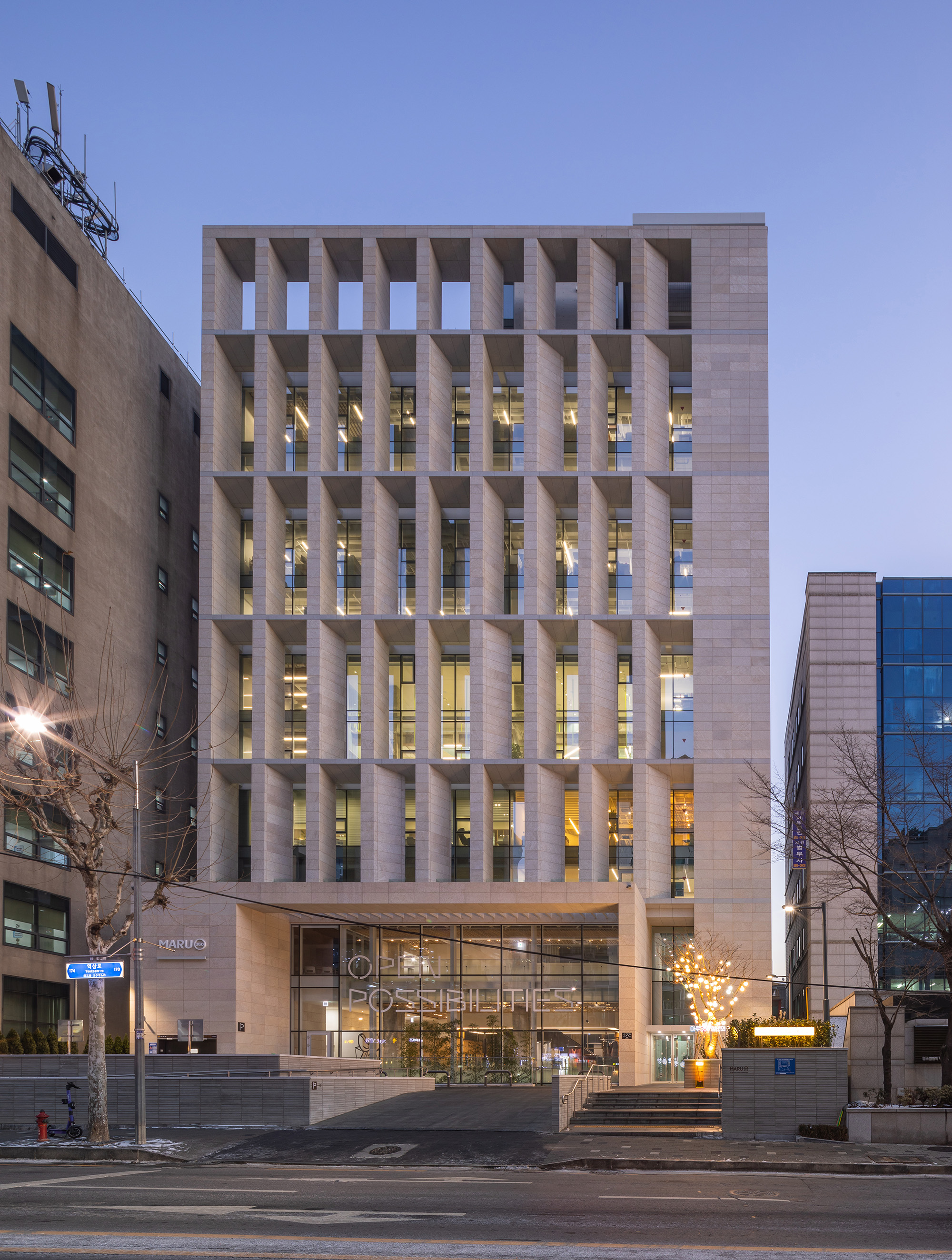 | 마루 360 설계자 | 오호근 _ (주)종합건축사사무소 디자인캠프 문박 디엠피 건축주 | 재단법인 아산나눔재단 감리자 | (주)종합건축사사무소 디자인캠프 문박 디엠피 시공사 | (주)케이씨씨건설 설계팀 | 전봉진, 장호년, 구진모 대지위치 | 서울특별시 강남구 역삼로 172 주요용도 | 업무시설, 근린생활시설 대지면적 | 1,197.30㎡ 건축면적 | 569.73㎡ 연면적 | 6,773.32㎡ 건폐율 | 47.58% 용적률 | 400.53% 규모 | B3F - 11F 구조 | 철근콘크리트구조 외부마감재 | 화강석(사비석, 거창석) 내부마감재 | 화강석(사비석) , 노출콘크리트, 친환경수성페인트 설계기간 | 2019. 10 - 2020. 12 공사기간 | 2020. 02 - 2021. 09 사진 | 윤준환 구조분야 | (주)광림구조엔지니어링 기계설비분야 | (주)정도설비 전기분야 | (주)일신이엔씨 소방분야 | (주)남도티이씨 |