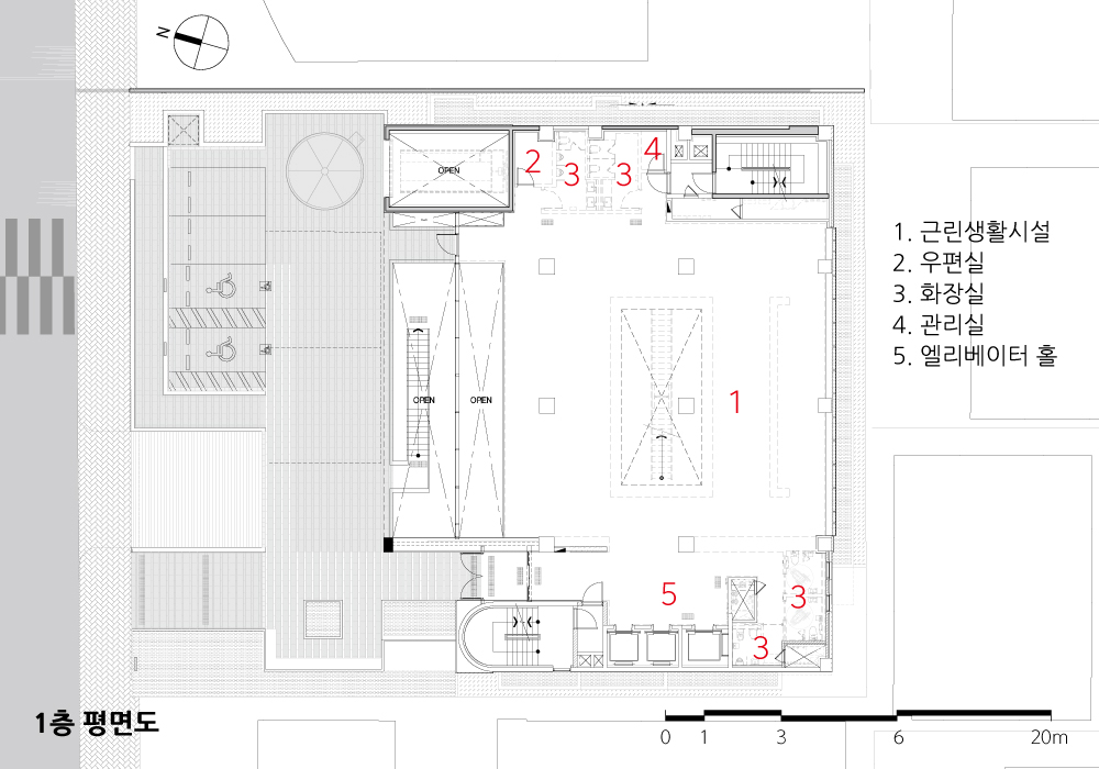 Maru 360 Architect | Oh, Ho-Keun _ designcamp moonpark dmp Client | The Asan Nanum Foundation Supervisor | designcamp moonpark dmp Construction | KCC E&C Project team | Jeon, Bongjin / Chang, Honyon / Koo, Jinmoh Location | 172, Yeoksam-ro, Gangnam-gu, Seoul, Korea Program | Office, Neighborhood facility Site area | 1,197.30㎡ Building area | 569.73㎡ Gross floor area | 6,773.32㎡ Building to land ratio | 47.58% Floor area ratio | 400.53% Building scope | B3F - 11F Structure | RC Exterior finishing | Granite stone(color granite) Interior finishing | Granite stone(color granite), Exposed concrete, Waterbased paint Design period | 10, 2019 - 12, 2020 Construction period | 02, 2020 - 09, 2021 Photograph | Yoon, Joonhwan Structural engineer | Gwanglim Structure Engineering Corp. Mechanical engineer | Jungdo enginerring Electrical engineer | Ilshin ENC(engineering & construction) Fire engineer | Namdo TEC |