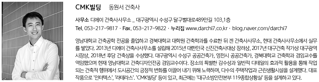 새롭게 들어온 CMK 빌딩이 주변과 조화롭게 연결되어 거리를 지나는 많은 사람의 즐거운 산책 시간에 기여할 수 있기를 기대해 본다.