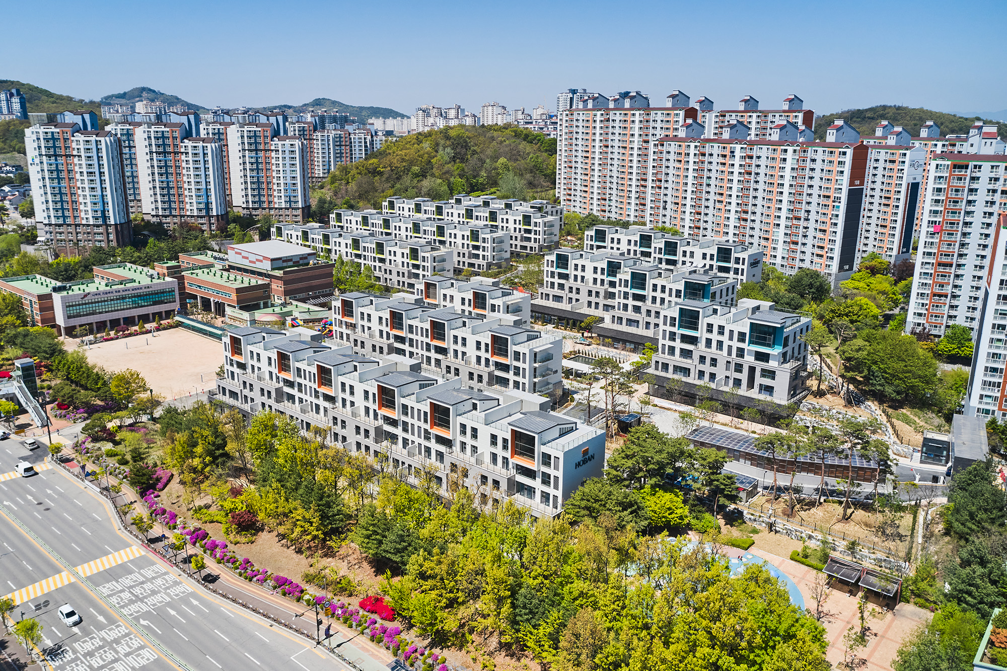 지형의 단차를 활용하여 1개층의 지하주차장과 하층부는 선큰형 후정을 가진 테라스 세대 및 부대복리시설, 근린생활시설, 단지를 관통하는 보행자 도로와 광장을 계획하고, 상층부는 독립된 테라스를 가진 연립주택으로 계획했다. 전체 단지는 10개 동으로 구성되어 있고, 각 세대가 가지는 독립된 테라스와 최상층 세대의 옥상과 연계된 다락구성으로 수직적인 다채로운 공간감과 리듬감을 부여해 다이내믹한 형상을 갖췄다.