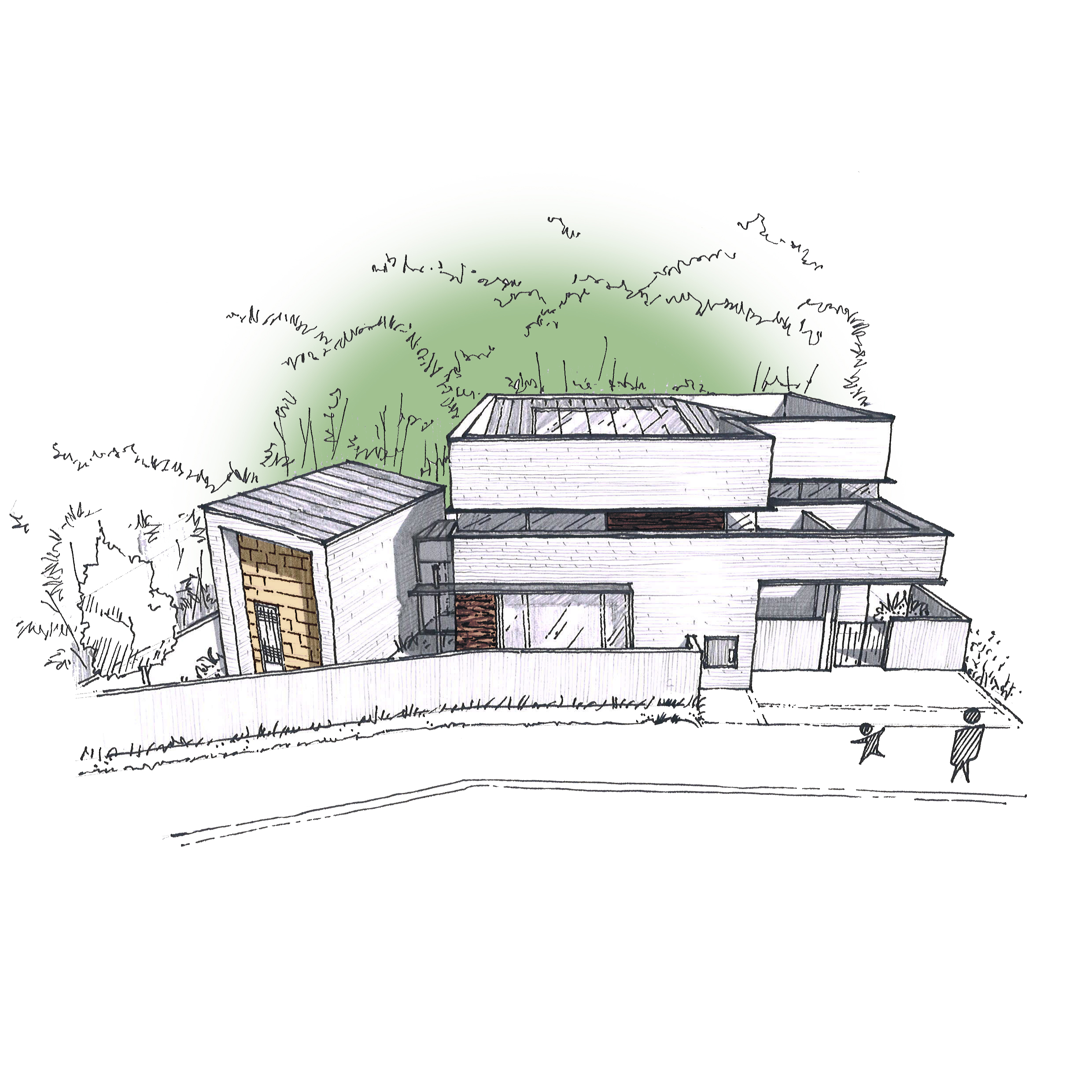 건축적 내용을 소통하기 위한 기본적인 수단이 되는 것은 바로 도면이라고 할 수 있을 겁니다. 하지만 일반인들이 전문적인 기호와 이를 통해 공간을 해석해낸 도면을 이해하기는 쉽지 않습니다. 그래서 스케치를 많이 활용하는 편입니다. 디자인을 보여주는 스케치, 개념 스케치, 그리고 평면계획 스케치 등 직접 그린 스케치를 활용해보니 건축주들의 이해를 도울 수 있었고, 특히 설계의도는 정보만 있는 도면보다 잘 드러낼 수 있는 방법이 되기도 해서 현재도 가장 좋아하는 나름의 노하우가 되고 있습니다.