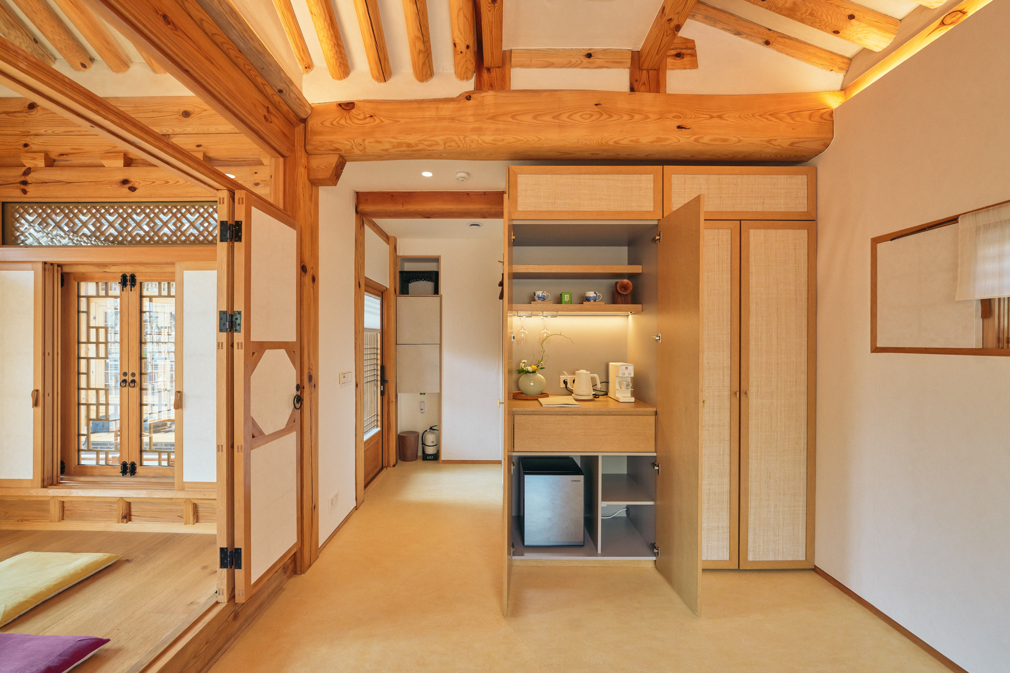 "Iriru" is a name coined by the client, which means a house with two Numa-ru (raised wooden floor verandas). Although it is a relatively small-sized Hanok (traditional Korean house) with an area of about 80 pyeong, it has become a meaningful project as a Hanok that adapts to high-density urban areas with multi-story buildings and mixed-use functions, finding intelligent solutions.