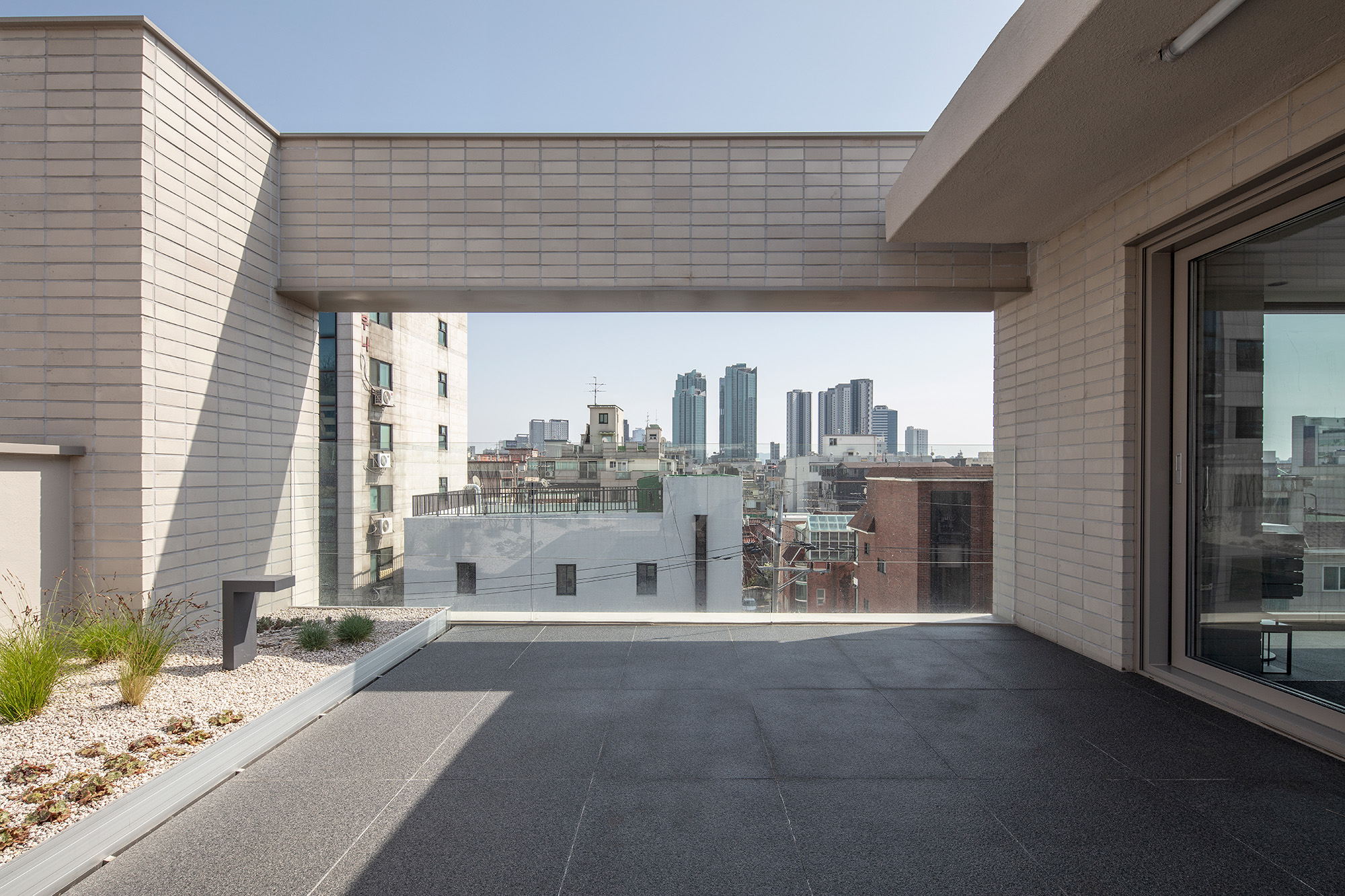 신축과 구축을 포함해 5층 내외 규모 건축물의 가장 중요한 이슈는 계단의 배치와 엘리베이터의 유무인데, 이 건물도 그러했다. 협소한 계단실과 각층의 복도에 배치된 공용화장실은 20년이 넘은 꼬마빌딩의 전형적인 평면이었고, 기존의 화장실 위치에 엘리베이터를 삽입하기 위해 화장실과 계단을 철거한 후 신설했다. 주택의 모습이었던 5층과 6층의 내력벽 철거와 구조보강도 함께 이루어졌다.