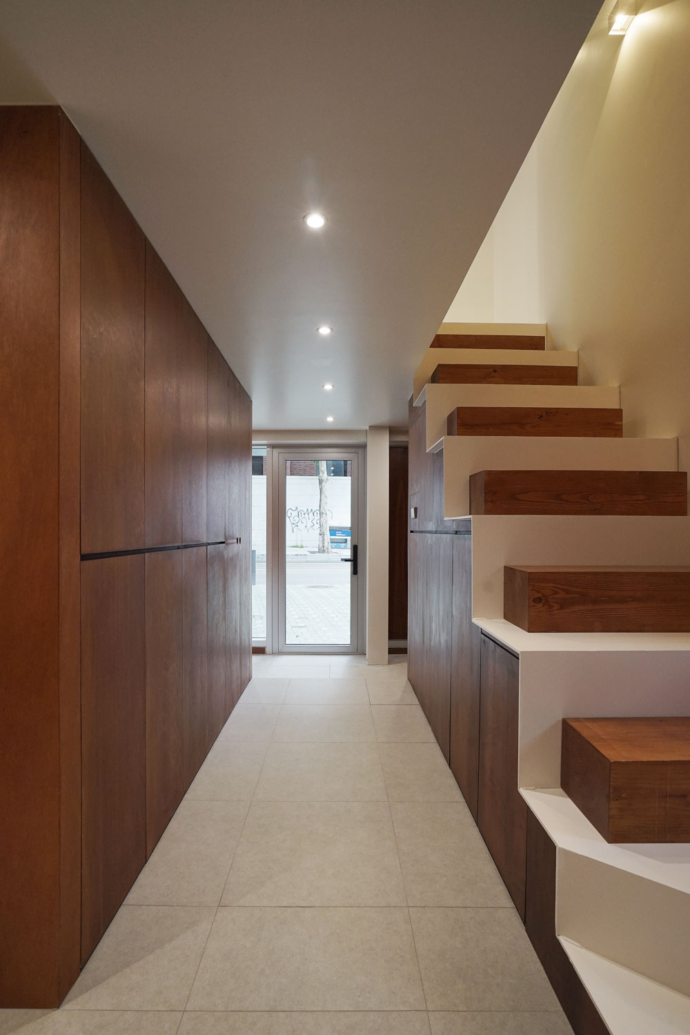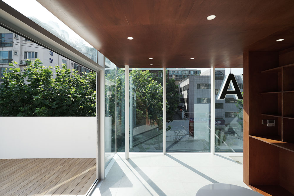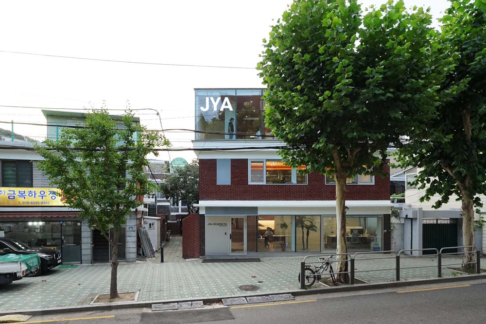 JYA HOME Architect | Jo, Janghee _ JYA-RCHITECTS Collaborative design | Won, Youmin(NAI) _ JYA-RCHITECTS Client | Jo, Janghee / Won, Youmin Supervisor | Park, Seongil Construction | JYA-RCHITECTS Project team | Park, Jiyoun / Kim, Sooyeon Design intention realization | JYA-RCHITECTS Location | 383-2, Moraenae-ro, Seodaemun-gu, Seoul, Korea Program | Office Site area | 140.00㎡ Building area | 80.67㎡ Gross floor area | 177.42㎡ Building to land ratio | 57.62% Floor area ratio | 126.7% Building scope | 3F Structure | Steel frame structure Exterior finishing | Existing Decorative Brick, Color Steel Plate, AL Curtain wall Interior finishing | Pocerin tiles, water-based paint, varnish on plywood Design period | Dec. 2019 – Feb. 2020 Construction period | Mar. 2020 – Sep. 2020 Photograph | Won, Youmin Structural engineer | Hangil Mechanical engineer | Jungyeon Electrical engineer | Jungyeon |
