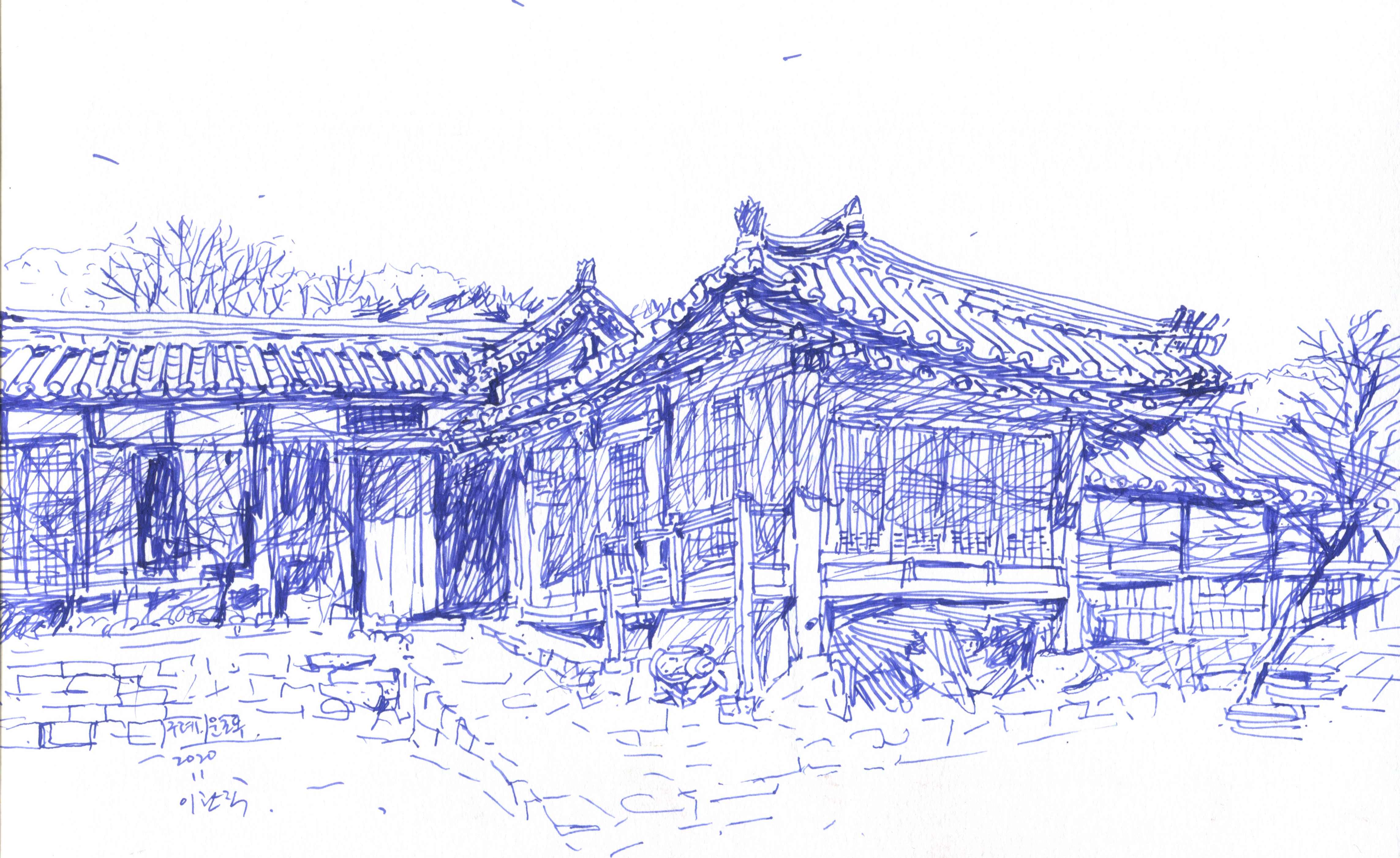 구례 시내 길가 분식집에서 아침으로 김밥을 주문했다. 여느 지방 동네와 비슷한 풍경이다. 가게가 있고 천막으로 노점을 확장해서 장사를 한다. 구례 군청 부근에 차를 대고 루씨살롱이라는 카페에서 커피를 마신다. 창밖으로 봉성산이 보인다. 산 능선에 한옥 정자가 예쁘게 앉아 있다. 1776년(영조 52) 류이주(柳爾胄)가 건립하였다는 운조루(雲鳥樓)에 들렀다. 타인능해(他人能解)라는 쌀독을 두어 주위의 배고픈 사람이 쌀을 가져갈 수 있게 하는 베풀었다는 일화가 있다. 루이주는 경상북도 출신이지만 구례에 인접한 낙안에 수령으로 왔다가 아예 운조루를 지어 이곳에 눌러 앉았다. 미음(ㅁ)자 모양의 안채를 기본으로 전체가 품자형(品字形)의 배치를 이루고 있는 양반가로, 처음 지을 때 99간(현존73간)의 대규모 주택이었다 한다. 연못과 개천과 나란한 긴 행랑채 가운데 솟을 대문이 있고 주인 할머니가 씨를 발라낸 빨간 산수유열매를 마루에 펼쳐 말리고 있다.