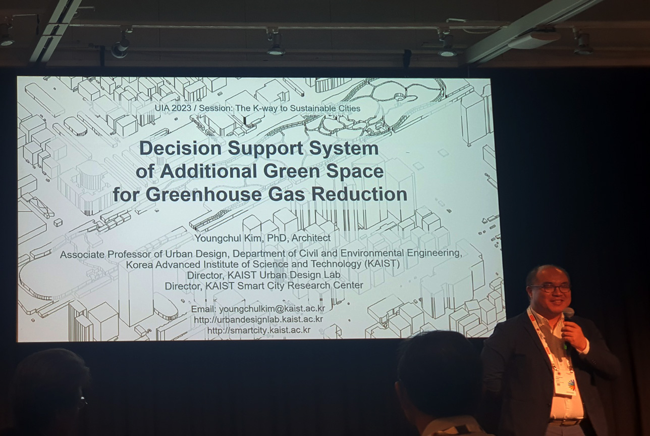 오후에는 한국수자원 공사와 덴마크 대사관 주재로 ‘The K-way to Sustainable Cities’를 주제로 한 한국의 건축사와 교수들의 강연이 있었다. 발표자 중 한 명인 카이스트(KAIST)의 김영철 교수는 도시공간을 분석해 그린하우스 가스를 줄일 수 있게 데이터를 활용한 알고리즘을 적용한 도시의 디자인 케이스를 소개하고, 도시와 기술과 건축의 협업 필요성과 중요성에 대해 강연했다. 강연에서 소개된 데이터를 활용한 도시공간분석은 실제 설계단계에서 범용화 되면 도시공간에 큰 변화를 줄 수 있다는 생각이 들었다. 두 번째 주요 강연은 이건섭 대한건축사협회 국제위원장이 삼우종합건축사사무소에서 진행한 네이버 사옥과 몽고의 마스터플랜과 공동주택설계에 대한 강연이었다. 지속가능한 설계와 국내 최초 로봇 친화 사무실인 네이버 제2사옥의 설계와 현재 사용에 대한 설명과 라이프 패턴에 따라 달라질 수 있는 몽골의 마스터 플랜, 또 기후의 영향을 고려해 변화한 공동주택의 주동 배치에 대한 내용의 강연은 SDG 17을 적용한 설계 프로젝트로 참가자들의 관심을 받았다. 천의영 한국건축가협회 회장은 ‘땅의 도시 땅의 건축’을 주제로 서울 공공건축의 변화과정과 이번 가을에 열릴 서울 비엔날레에 대해 발표했다.