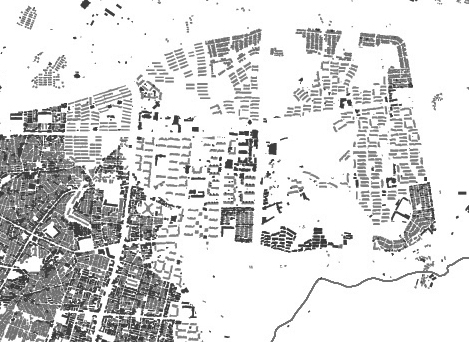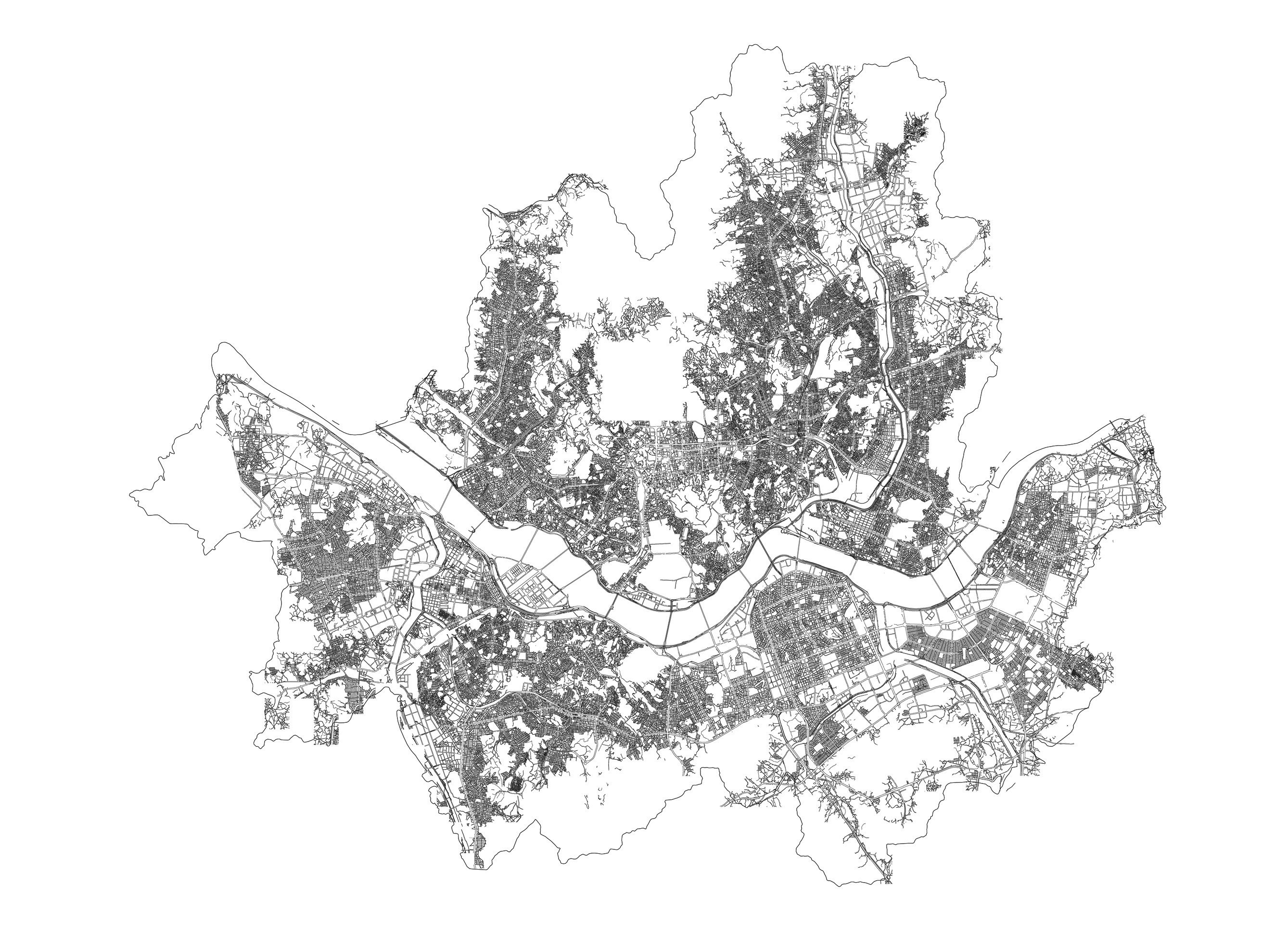 서울의 확장과 도시화, 기존 도시화 지역의 변화는 토지의 재분배 방식에 기반한다. 토지의 재분배 방식은 수형도1)와 같은 방식으로 도시 조직을 형성하는 구성요소들의 위계가 와해되고 재구성하는 방식으로, 동등한 요소들로 이루어진 구조가 형성된다. 이때 기존 구조의 각 위계들은 저마다 다른 변형과정을 만들어낸다.