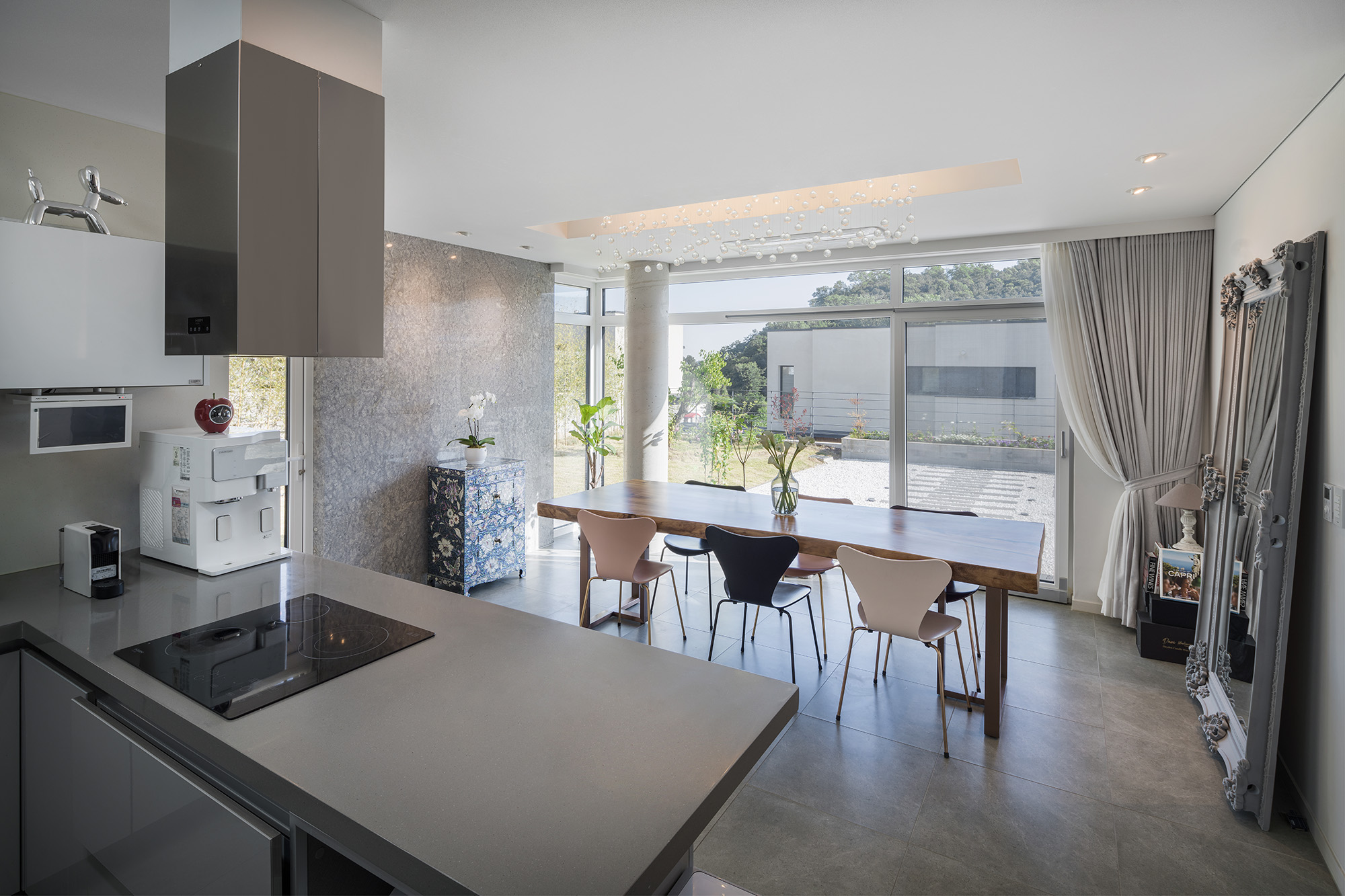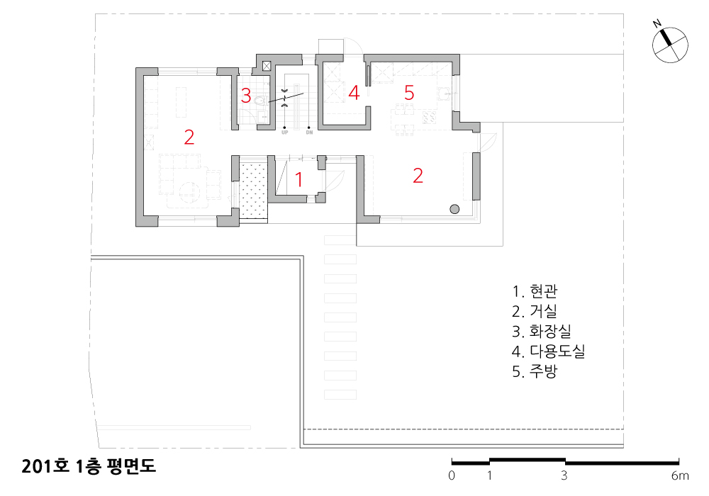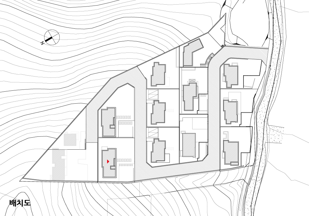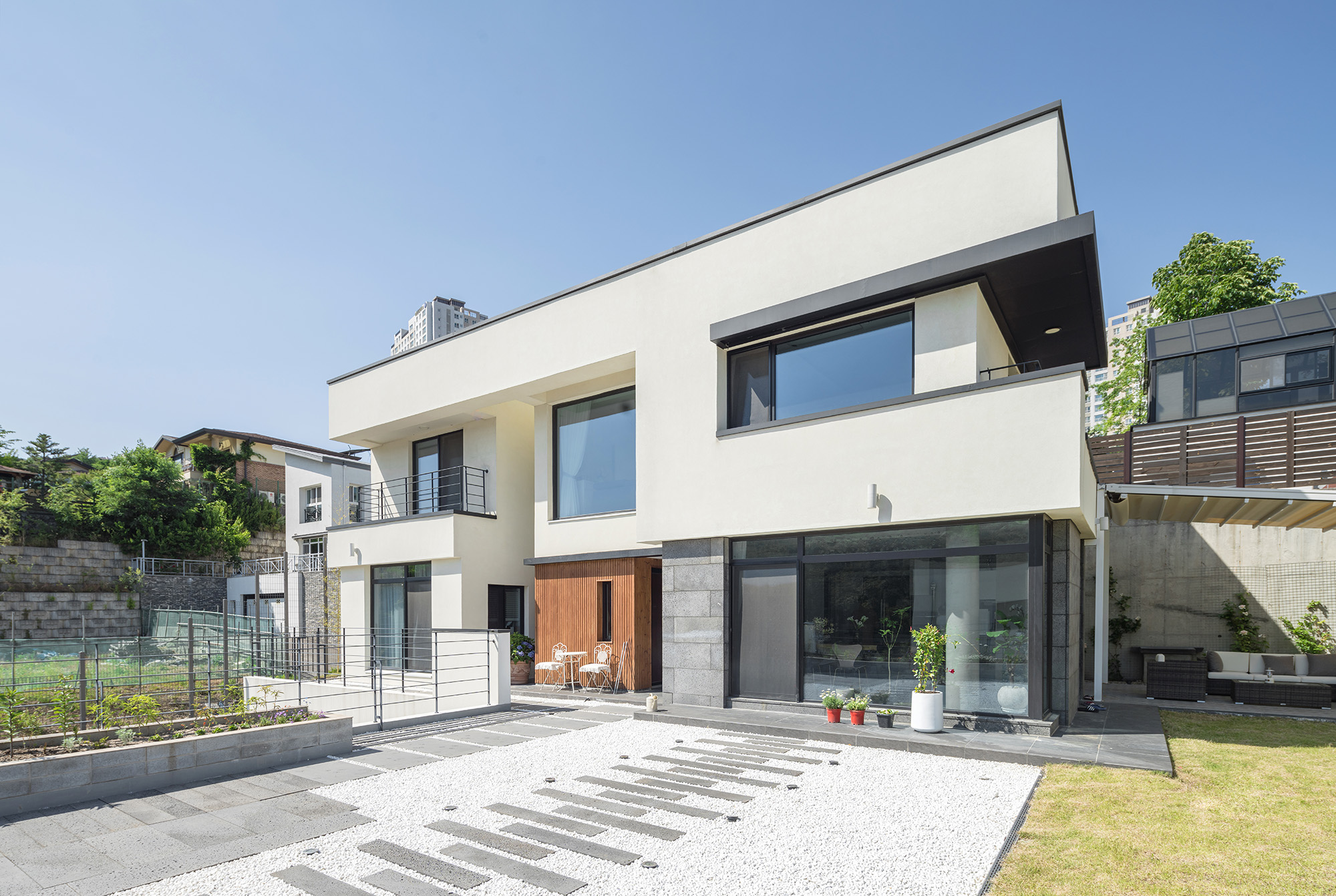 The Courtyard Blue residential complex is situated in Hagaldong, Giheung-gu, Yongin-si, Gyeonggi Province. This estate began its journey towards becoming an optimal residential complex with its first meeting in the fall of 2016. Through multiple planning stages to determine the size of the land and the scale of the houses, it underwent various changes to create 13 distinctive and unique houses until spring 2022. Subsequently, 3 lots were sold, and ultimately, 10 custom-designed houses were built to cater to the specific requirements of each homeowner. Among them, Unit 201 stands out as a representative example that best reflects the intentions of both the homeowner and the designer.