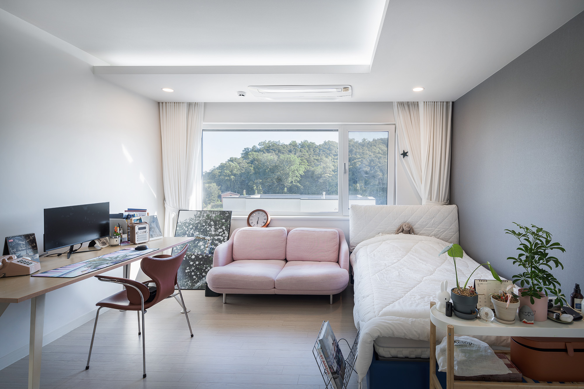 Courtyard Blue was designed to meet the contemporary needs of the time. Particularly due to the COVID-19 pandemic, remote work gained prominence, and homes were redefined as comprehensive spaces not only for personal life but also for work and hobbies. Courtyard Blue accommodates the residents' needs by designing two main circulation paths. The basement floor is equipped with a living room, multipurpose room, storage, etc., to be utilized as hobby or workspace. Large windows and a courtyard were introduced to alleviate the confined feeling of the basement.