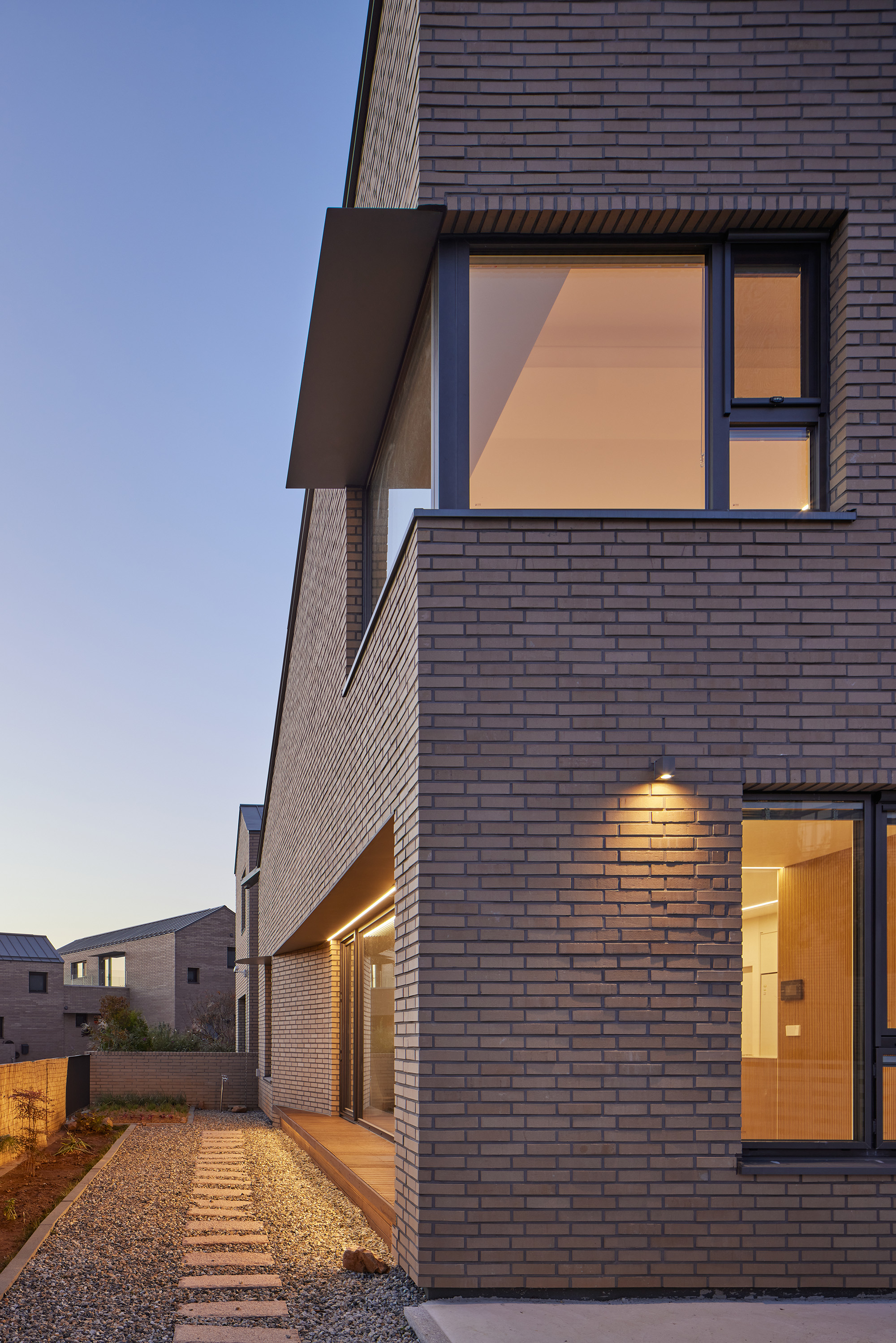 Yu Yeon Jae Architect | Park, Kyoungmi · Jang, Jeongwoo _ Architects office9kahn Client | Lee, JongHwan Construction | Build & Fix Design intention realization | Architects office9kahn Location | Gongheung-ri, Yangpyeong-gun, Gyeonggi-do, Korea Program | Single Family House Site area | 271.00㎡ Building area | 94.63㎡ Gross floor area | 142.82㎡ Building to land ratio | 34.92% Floor area ratio | 52.70% Building scope | 2F Structure | Light weight wood frame Exterior finishing | Brick tile, Pre-coated metal Interior finishing | Gypsumboard, Vinyl paint finish, Wood flooring, Tile Design period | Jul. 2021 - Jan. 2022 Construction period | Feb. 2022 - Aug. 2022 Photograph | Roh, Kyung Structural engineer | Inter ENC Mechanical engineer | Geonchang ENC Electrical engineer | Sungjin TEC Certification | Passive House certification (4.0L/㎡a) by Passive House Institute Korea |