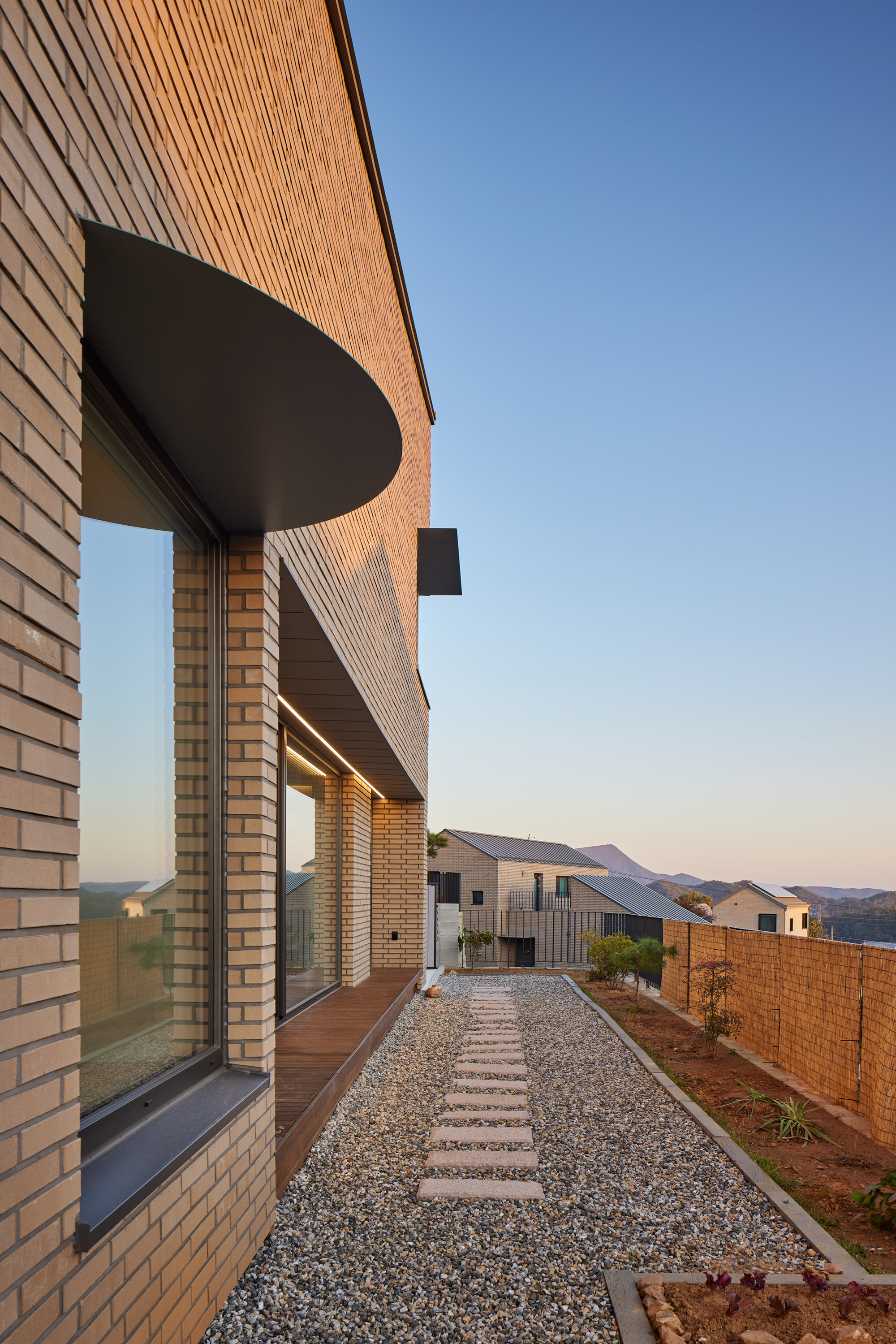 Yu Yeon Jae Architect | Park, Kyoungmi · Jang, Jeongwoo _ Architects office9kahn Client | Lee, JongHwan Construction | Build & Fix Design intention realization | Architects office9kahn Location | Gongheung-ri, Yangpyeong-gun, Gyeonggi-do, Korea Program | Single Family House Site area | 271.00㎡ Building area | 94.63㎡ Gross floor area | 142.82㎡ Building to land ratio | 34.92% Floor area ratio | 52.70% Building scope | 2F Structure | Light weight wood frame Exterior finishing | Brick tile, Pre-coated metal Interior finishing | Gypsumboard, Vinyl paint finish, Wood flooring, Tile Design period | Jul. 2021 - Jan. 2022 Construction period | Feb. 2022 - Aug. 2022 Photograph | Roh, Kyung Structural engineer | Inter ENC Mechanical engineer | Geonchang ENC Electrical engineer | Sungjin TEC Certification | Passive House certification (4.0L/㎡a) by Passive House Institute Korea |