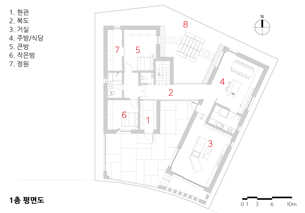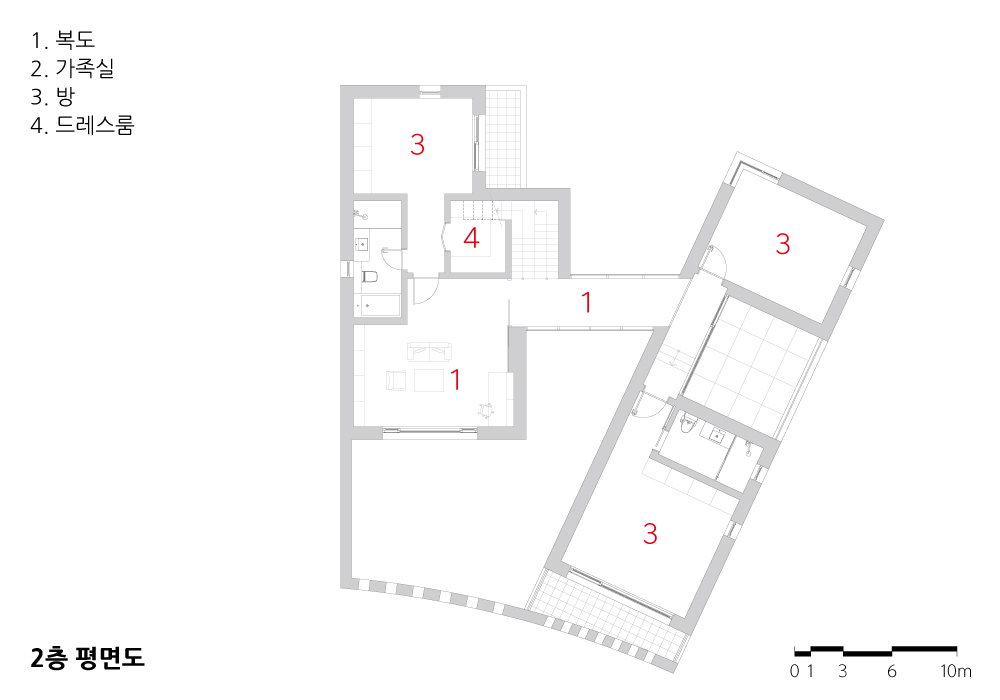 건축주는 3대가 살 수 있는 집을 원했다. 많은 방과 가족들이 놀 수 있는 지하 공간까지, 그리고 날이 좋으면 강변을 바라보며 가족이 힐링할 수 있는 공간을 원했다.