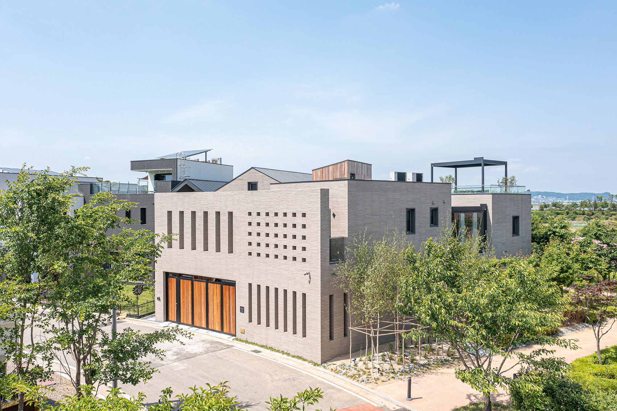 The house resembling an art gallery Architect | Yoon,gyeongpil _ Gyeongpiri Architecture Powerhouse Client | Choi, Junghun / In, Ypungsil Supervisor | Gyeongpiri Architecture Powerhouse Construction | Sungdo Industrial Development Project team | Lee, Eunyoung / Yoon, Yuri Design intention realization | Gyeongpiri Architecture Powerhouse Location | 74-19, Saengtaegongwon-gil, Gimpo-si, Gyeonggi-do, Korea Program | House Site area | 392.90㎡ Building area | 188.61㎡ Gross floor area | 424.85㎡ Building to land ratio | 48.00% Floor area ratio | 77.26% Building scope | B1F - 2F Structure | RC Exterior finishing | Italian brick Interior finishing | Environment paint, Gypsum board Design period | Feb. 2021 - Jul. 2021 Construction period | Aug. 2021 - Aug. 2022 Photograph | #f64_archiphoto Structural engineer | Theonese Mechanical engineer | Kunyang MEC Electrical engineer | Chunil ENG Fire engineer | Chunil ENG |