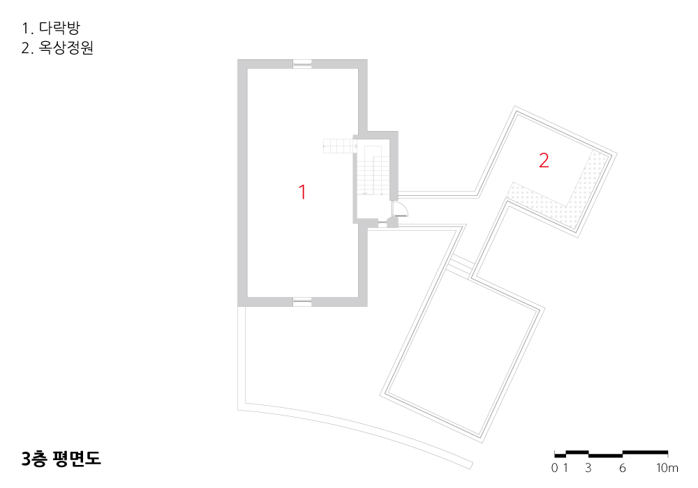 한강 수변공원 옆의 택지는 오각형의 땅으로 비정형 대지에 대한 고민이 있었다. 나는 대지를 볼 때 좀 오래 머물러 땅을 느껴보려 노력하는 편이다. 그 속에 무엇을 심을 것인가? 이러한 고민은 작품의 영감과 맞닿아 있다.