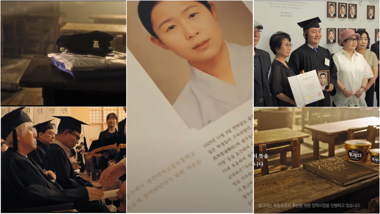 투게더 아이스크림으로 유명한 빙과회사 빙그레가 지난 7월 15일 천안에 있는 독립기념관에서 학생 독립운동가를 위한 ‘세상에서 가장 늦은 졸업식’을 열었다. ‘세상에서 가장 늦은 졸업식’은 독립운동을 하다가 퇴학을 당해 학업을 포기해야 했던 학생 독립운동가를 위해 마련한 명예졸업식이다. 명예 졸업장을 받은 사람들은 국가보훈부 공훈전자사료관 안에 퇴학 기록과 복원 가능한 사진이 남아있는 학생 독립운동가 중 후손들의 동의를 받아 선정한 94명이다.