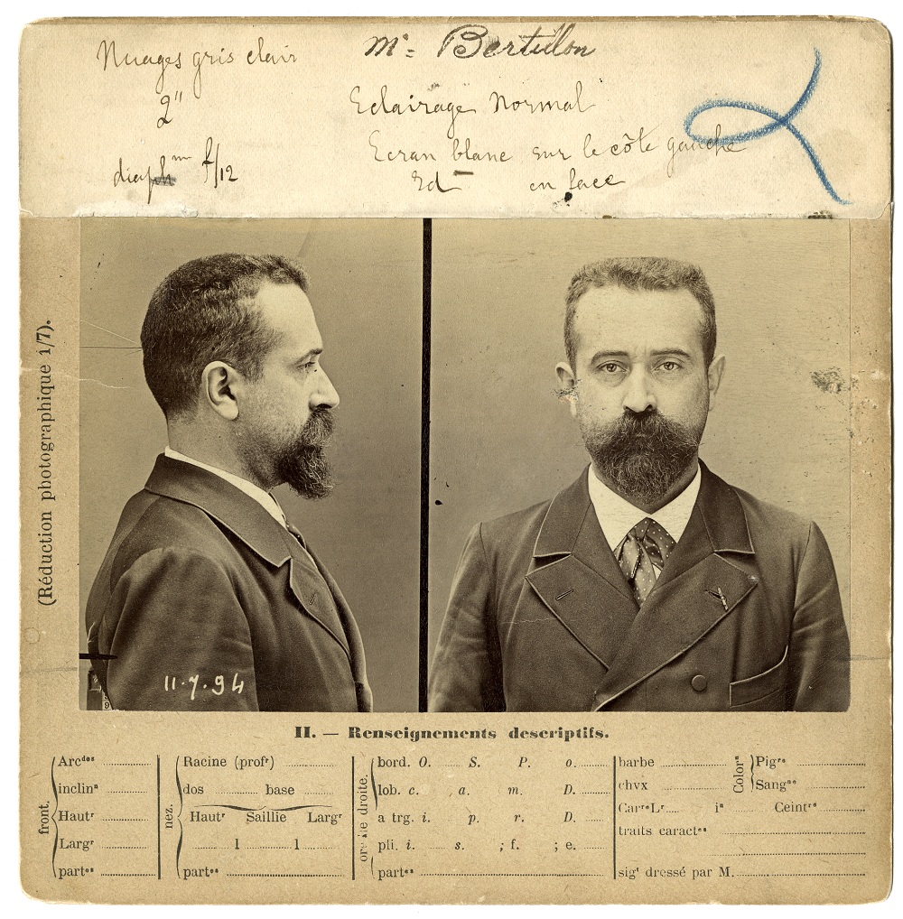다리가 측면에서 특징이 가장 잘 드러난다는 것은 쉽게 이해할 수 있다. 그렇다면 얼굴의 특징이 왜 옆에서 본 모습에서 드러난다고 생각했을까? 이것을 좀 더 치열하게 연구한 사람은 19세기에 범죄자 사진의 전형을 창조한 프랑스 경찰관 알퐁스 베르티옹이다. 19세기 과학사진사를 소상히 밝힌 『박상우의 포톨로지』에 따르면 베르티옹은 객관적 인물사진의 실체를 처음으로 밝힌 사람이다. 그가 예술 사진가로서 사진을 연구한 것이 아니라 경찰청 신원 감식부 반장으로서 사진을 연구했다는 점이 바로 인물사진의 실체를 파악하는 데 큰 도움을 주었던 것 같다. 사진이 발명된 뒤 사진의 실용적 가능성을 처음으로 발견한 전문가 집단은 바로 경찰이다. 그들은 범죄자를 관리하는 도구로서 사진의 탁월한 능력을 알아챘다. 하지만 범죄자 사진 제작을 사진관 사진사들에게 맡기자 그들은 관습적으로 일반 시민을 이상적으로 묘사하는 방식으로 범죄자를 촬영했다. 베르티옹은 그런 사진들이 귀족의 인물화만큼이나 주관적이라는 사실을 곧 깨달았다. 범죄자를 가장 객관적으로 기록할 수 있는 방법을 연구한 끝에 그들의 옆얼굴과 앞얼굴을 정확한 각도에서 찍는 이른바 ‘머그샷(mugshot)’을 고안하기에 이른다.<사진 8> 그는 여기에서 그치지 않고, 옆얼굴과 앞얼굴 중 어느 각도가 더 객관적인지를 연구했다.