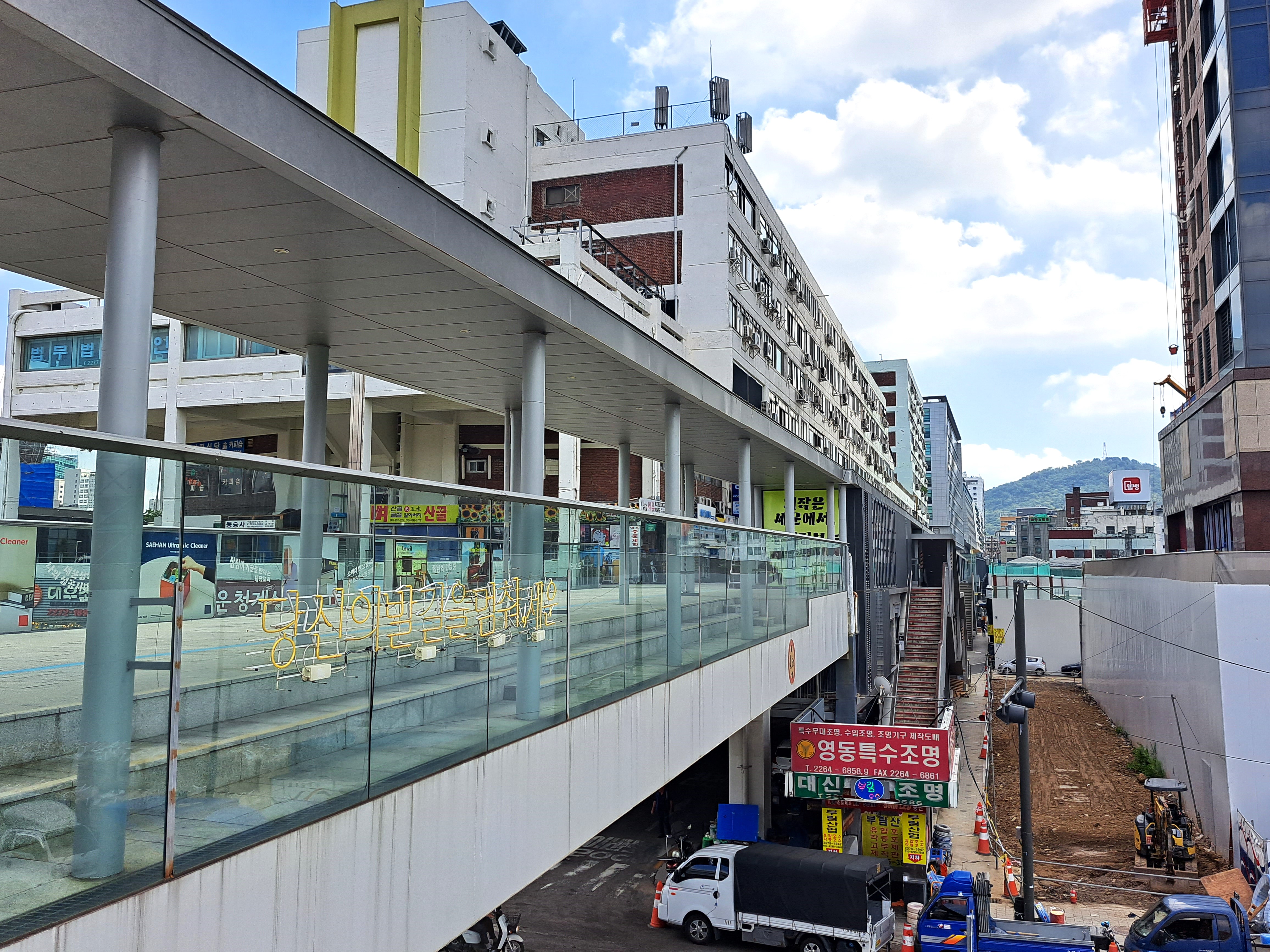 누군가는 세운상가의 토양이 오염되었다고 여기는 듯하다. 더럽고 비좁으며, 낡고 비전 없어 보이는 작업장이 무엇을 만들어 낼 수 있으며, 늙은 노동자들에게 뭘 기대할 수 있겠느냐는 시선을 거두지 않는다. 이곳을 방문해 ‘피를 토하는 심정’이라 토로한 오세훈 서울시장의 시선일까. 아니길 바라지만, 현실이 되어가는 느낌이다. 2006년 그는 세운상가를 포함한 지역 일대를 ‘세운재정비촉진지구’로 지정하면서, 2015년까지 세운상가를 철거하겠다는 계획을 발표한다. 물론 생존권에 위협을 느낀 상인들 반대가 극심했다. 종묘∼남산을 잇는 녹지 축 조성을 내세웠으나, 실제는 주변을 전부 철거하고 초고층빌딩을 건립하는 철거재개발이 주목적이었다. 격한 심정을 토로하는 태도로 보아 그의 생각은 아직도 확고한 듯 보인다. 긴 안목으로, 정녕 뒷세대의 지혜와 기술력에 이 땅과 공간을 맡겨둘 순 없을까?
