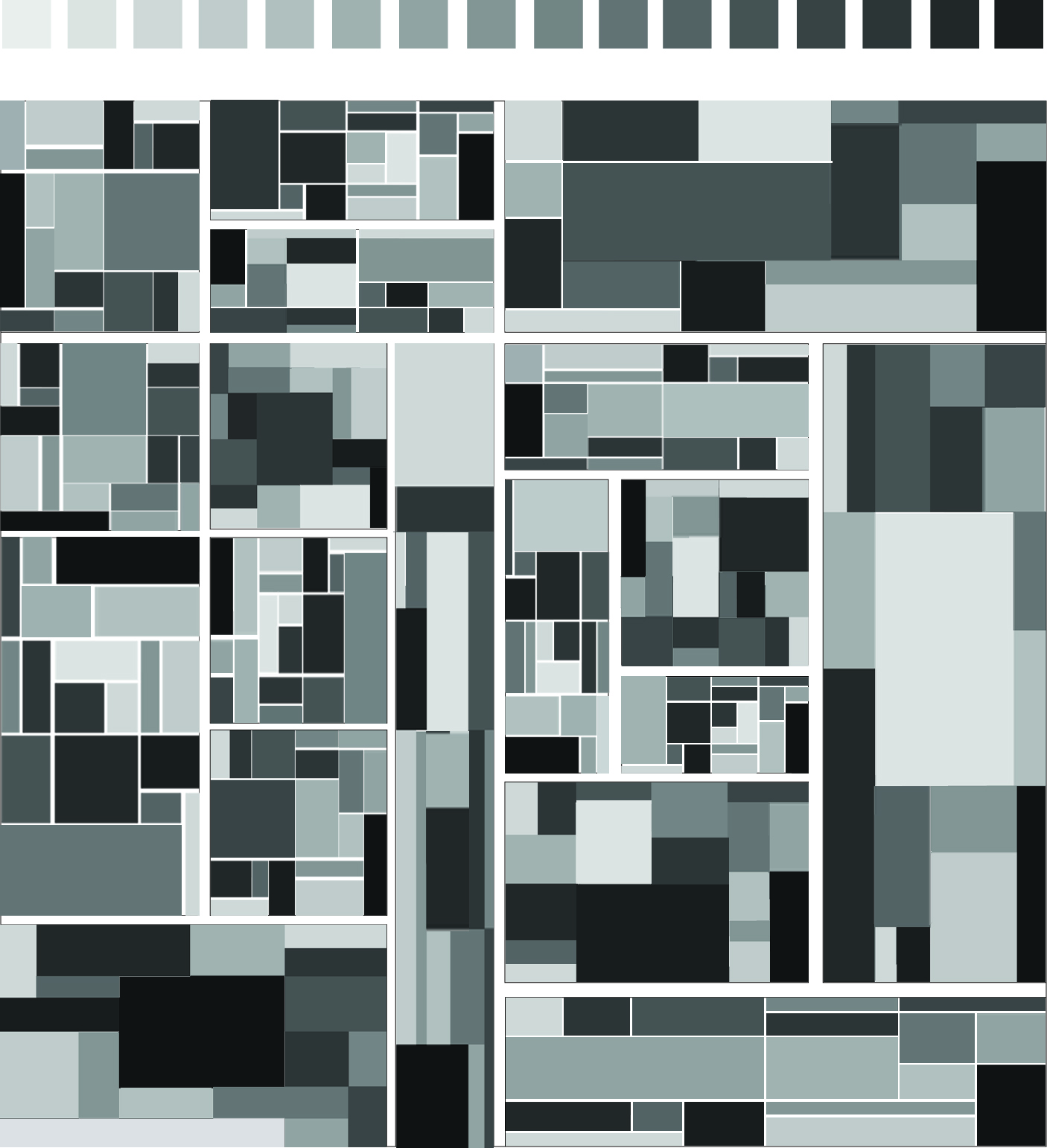 중간 규모의 지구는 사뭇 다른 모습을 띤다. 이 영역의 건물들은 매우 단기간에 건설되며, 하나의 디자인을 일정 수만큼 반복하는 것으로 완성되었다. 그 특징을 결정하는 요소인 건설의 속도는 지구들 간의 유사점이 아닌 차이점을 만들어낸다. 건설 회사, 건설 기술, 자재, 숙소나 공간 유형의 차이에 의한 특징들은 개별 사업지마다 다를 수 있는 다양한 요구나 제안, 결정 때문에 중단기적으로 변할 수 있다. 따라서 서울의 도시 블록을 만들어내는 대규모 지구의 모자이크 조각 안의 중간 규모 지구들은 시민들의 필요에 의해 그 구성요소가 차별화된다.
