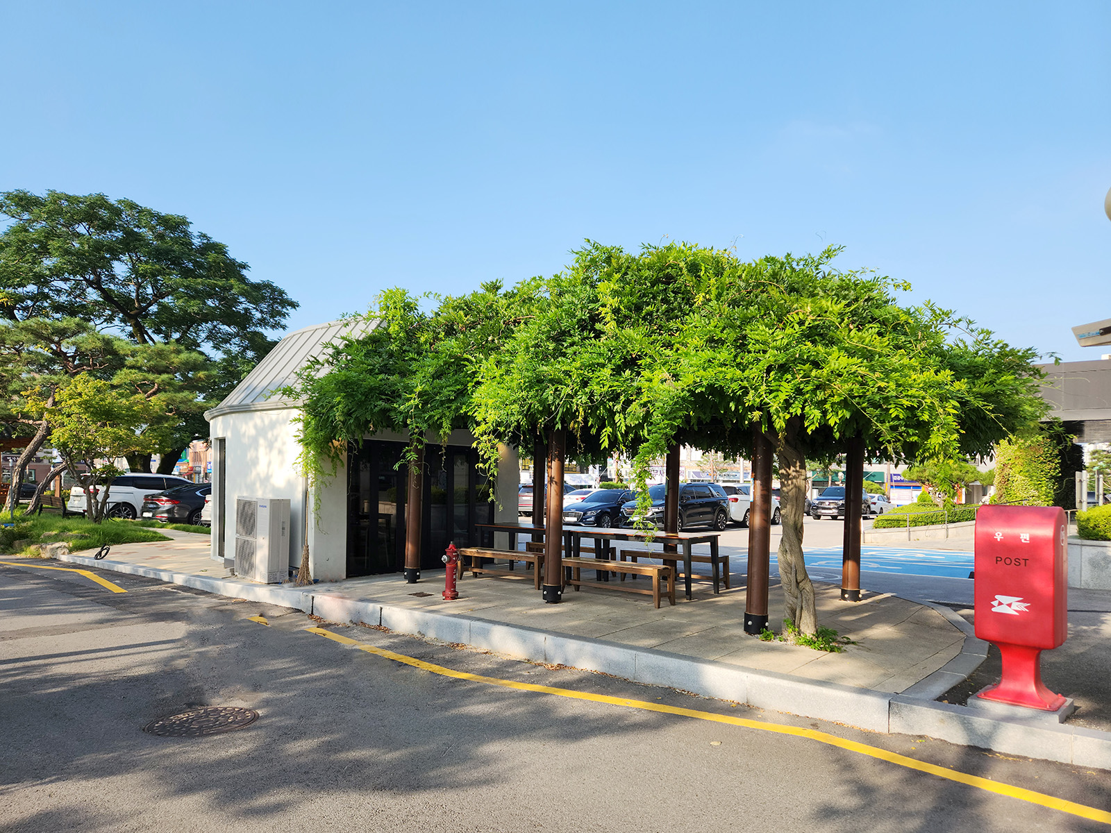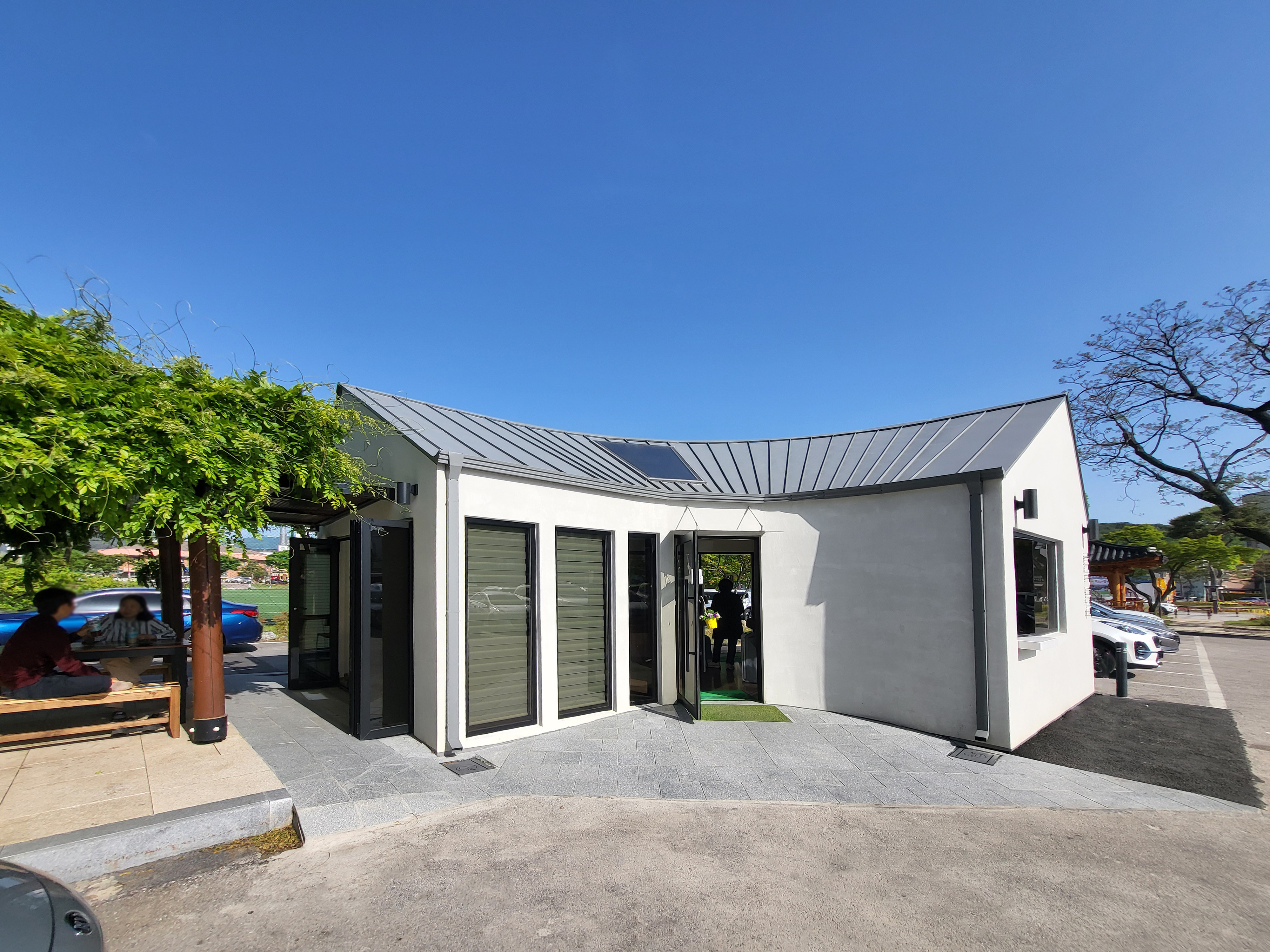 In Gochang County, the aim was to expand on this concept further by providing not only government office users but also local residents with access to a cafe, thereby relocating the cafe outside the government building. The idea was to establish a cafe that would be connected to the nearby "Tree Rest Area," a space that is frequently used by the community.