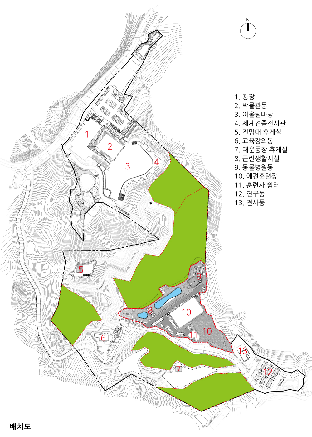 Overall, the “D.forest” spans about 112,400 square meters (34,000 pyeong) and includes a parking lot, a museum, five large and small sports fields, a 3-kilometer nature trail, four cafes, and a swimming pool to complete the recreational culture. Upon conducting case studies, it became evident that “D.forest” is the first pet-related museum in South Korea to obtain official permission. In a country where proper pet culture has not yet fully settled, it is hoped that this complex cultural space for dogs will provide a place for pets to freely run and play without constraints, promoting a more responsible and advanced pet culture.