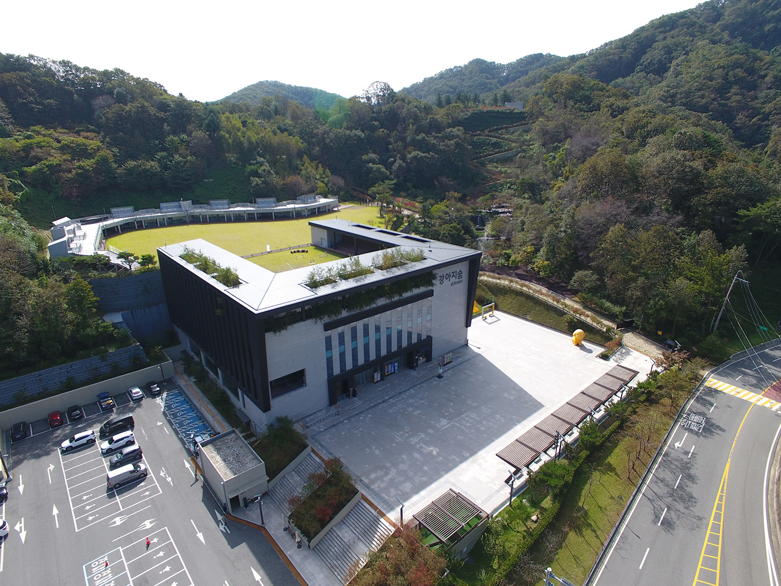 | 강아지숲 설계자 | 우병호 _ (주)건축사사무소 도시가 건축주 | 김용우, 김가혜, 김민혜 _ (주)더존비앤씨티 감리자 | (주)건축사사무소 도시가 시공사 | CJ건설(주) 설계팀 | 박태순, 배민식, 이재민 설계의도 구현 | (주)건축사사무소 도시가 대지위치 | 강원특별자치도 춘천시 남산면 충효로 437 주요용도 | 박물관(문화 및 집회시설), 근린생활시설 대지면적 | 108,379.40㎡ 건축면적 | 5,896.21㎡ 연면적 | 18,374.85㎡(용적률산정용 : 11,449.47㎡) 건폐율 | 5.44% 용적률 | 10.56% 규모 | B1F - 4F 구조 | 철근콘크리트구조 외부마감재 | 화강석, 징크판넬 내부마감재 | 스톤, 타일 설계기간 | 2016. 08 - 2021. 02 공사기간 | 2018. 03 - 2022. 09 사진 | 배수형 _ (주)더존비앤씨티 홍보실 구조분야 | (주)대한구조 이앤지 기계설비분야 | (주)성우엠이씨 전기분야 | (주)진원엔지니어링 소방분야 | (주)진원엔지니어링, (주)성우엠이씨 토목분야 | (주)신한이엔씨 조경분야 | 해율조경설계사무소 인테리어 | (주)무유에이엔디 |