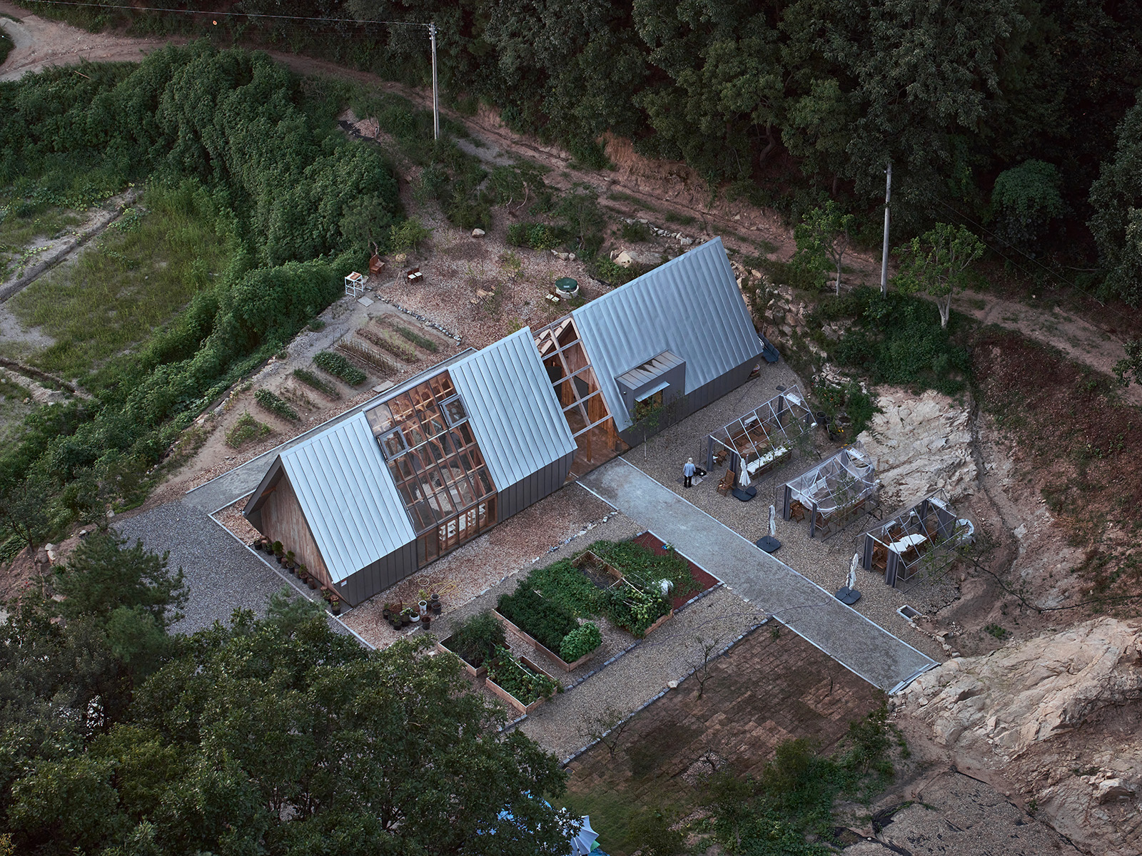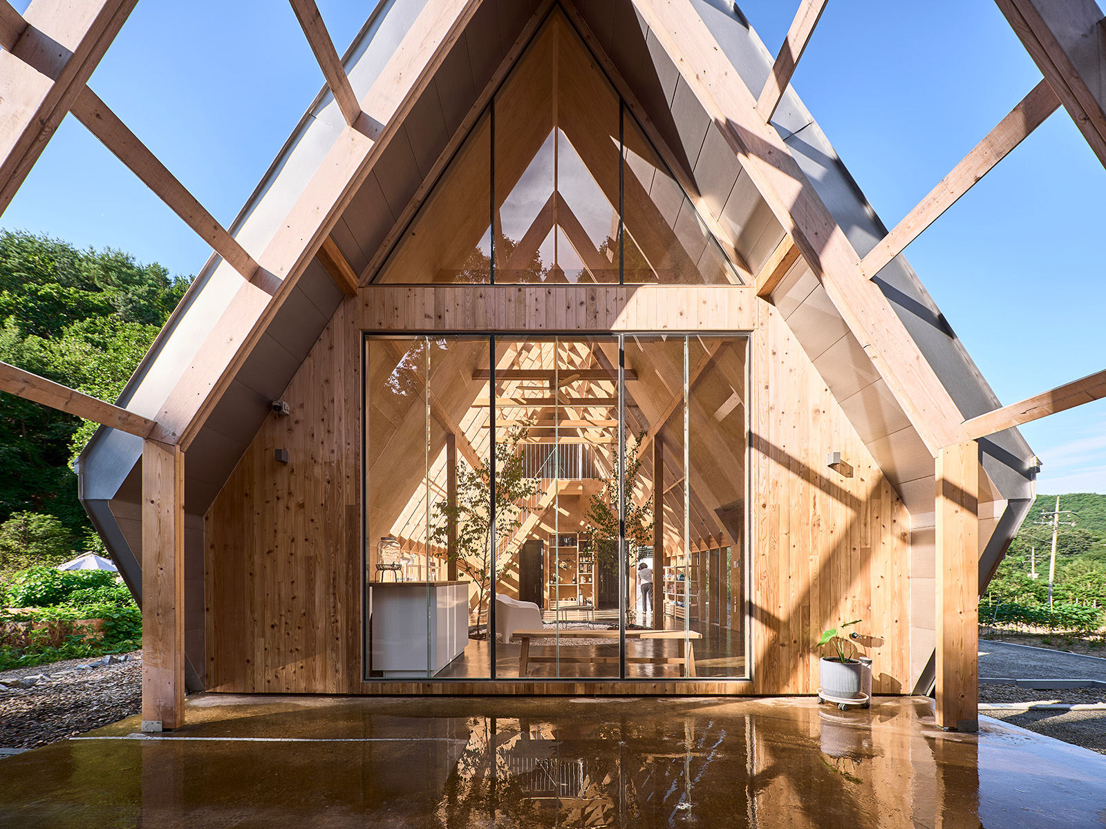 Nestled in a valley known as Iteogol, the Mangmi Farm harmoniously integrates with the surrounding hills and mountains. This architecture’s commitment to coexisting with nature is evident in the exposed wooden frame structure and curtain walls, which bridge the gap between the interior and the external environment. The Mangmi Farm aspires to age gracefully in conjunction with the natural world, always seeking to coexist harmoniously and naturally in this land.
