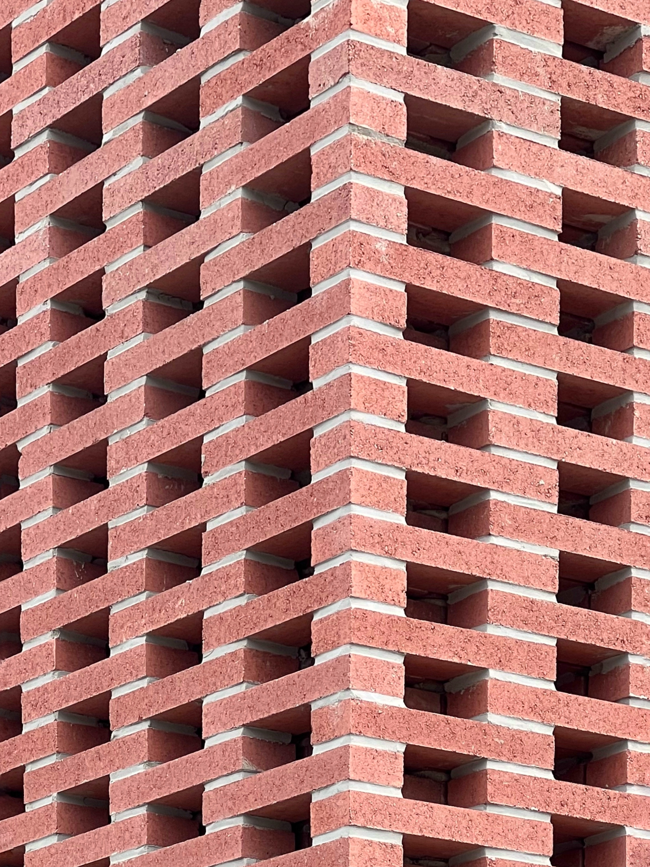 하늘에서 내려보면 건물의 네 모서리 중 부부침실 쪽을 제외한 세 부분이 비어 있다. 건물의 전체 윤곽을 주도하는 ‘네모’, 즉 네 모서리는 건물 안쪽에서도 확인된다. 모퉁이를 바라보는 장면에 늘 등장하는 것이 바로 외벽의 모서리 두 면을 타고 도는 영롱쌓기식 개구부다. 비록 리트펠트의 슈뢰더 주택과 같이 모퉁이를 깨고 완전히 열리는 개구부는 아니지만, 모서리를 중심으로 방사되는 줄눈과 투과된 빛의 화려한 패턴은 내부에서도 외부에서도 특별한 주목을 끈다. 단지 하나의 무늬에 불과하다고 평가절하할 수도 있겠지만, 벽을 투과한 빛과 그 깊이가 만들어 낸 이 패턴은 육면체의 단단한 모퉁이를 약화시키고 두 면을 동시에 보고 싶게 만드는 시각적 장치로서 작동한다.