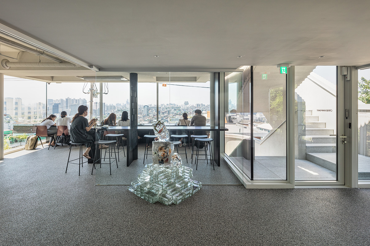 Comfort Seoul Architect | Monn, Jooho _ Boundless Architects Client | Kimheejune Stuio Construction | Jarchiv+ Supervisor | Boundless Architects Project team | Kim, Sukyung / Jung, Donghui Location | 45 Duteobbawiro 60-gil, Yongsan-gu, Seoul, Korea Program | Commercial Site area | 384.00㎡ Building area | 227.82㎡ Gross floor area | 645.81㎡ Building to land ratio | 59.28% Floor area ratio | 133.68% Building scope | B1F - 3F Structure | RC Exterior finishing | Exposed Concrete Design period | 2020. 04 – 2021. 04 Construction period | 2021. 04 – 2022. 02 Photograph | Shin, Kyungsub / Kim, Yanggil / Kim, Heejune Structural engineer | SDM Structural Engineering Mechanical engineer | U-Young Engineer Electrical engineer | Geosan Engineering Fire engineer | U-Young Engineer, Geosan Engineering Interior engineer | Studio Leehaeinn |