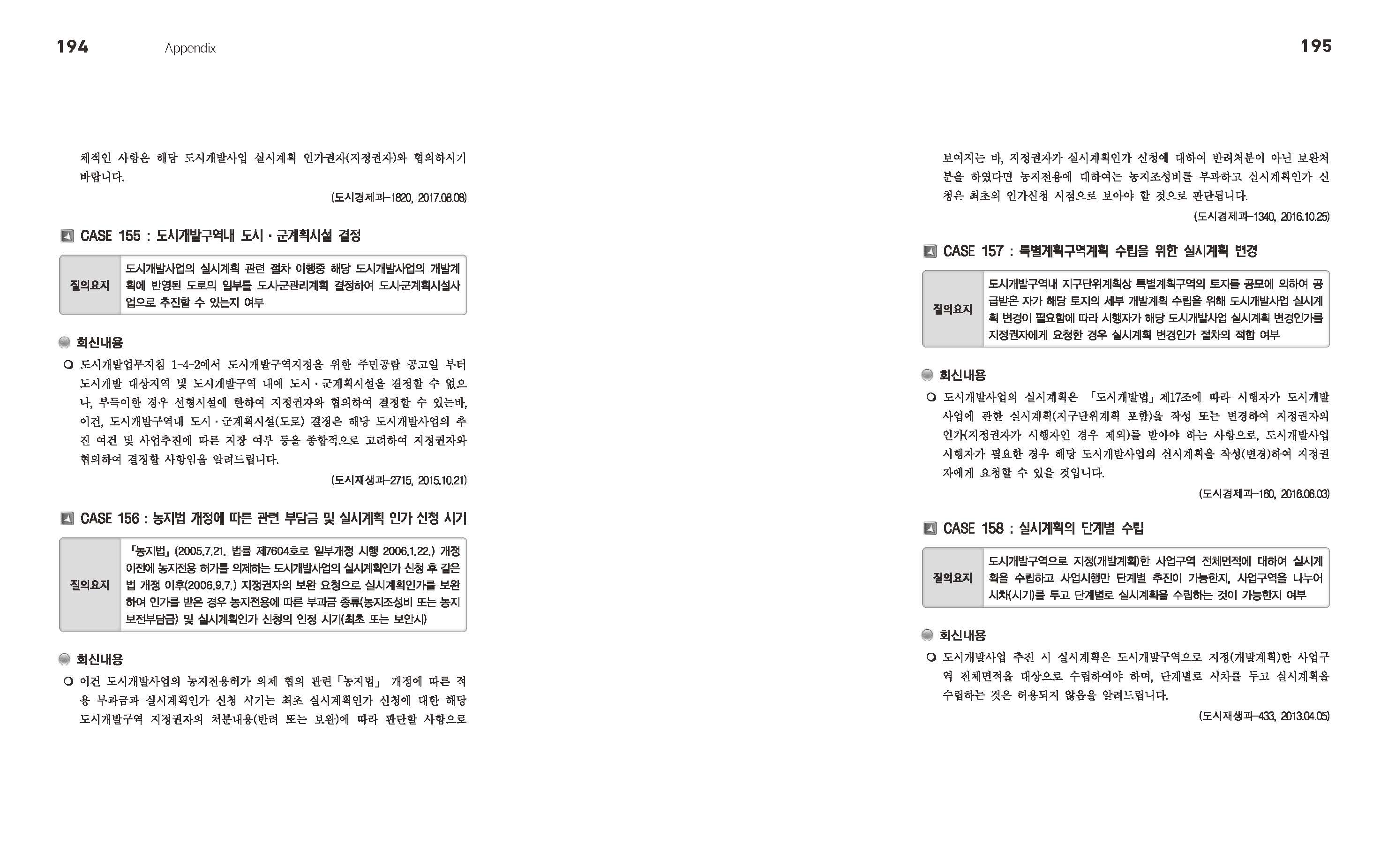 | [부록] 도시개발법령 관련 주요 질의ㆍ회신 사례집 2018.05 (0) | 2022.12.01 |
