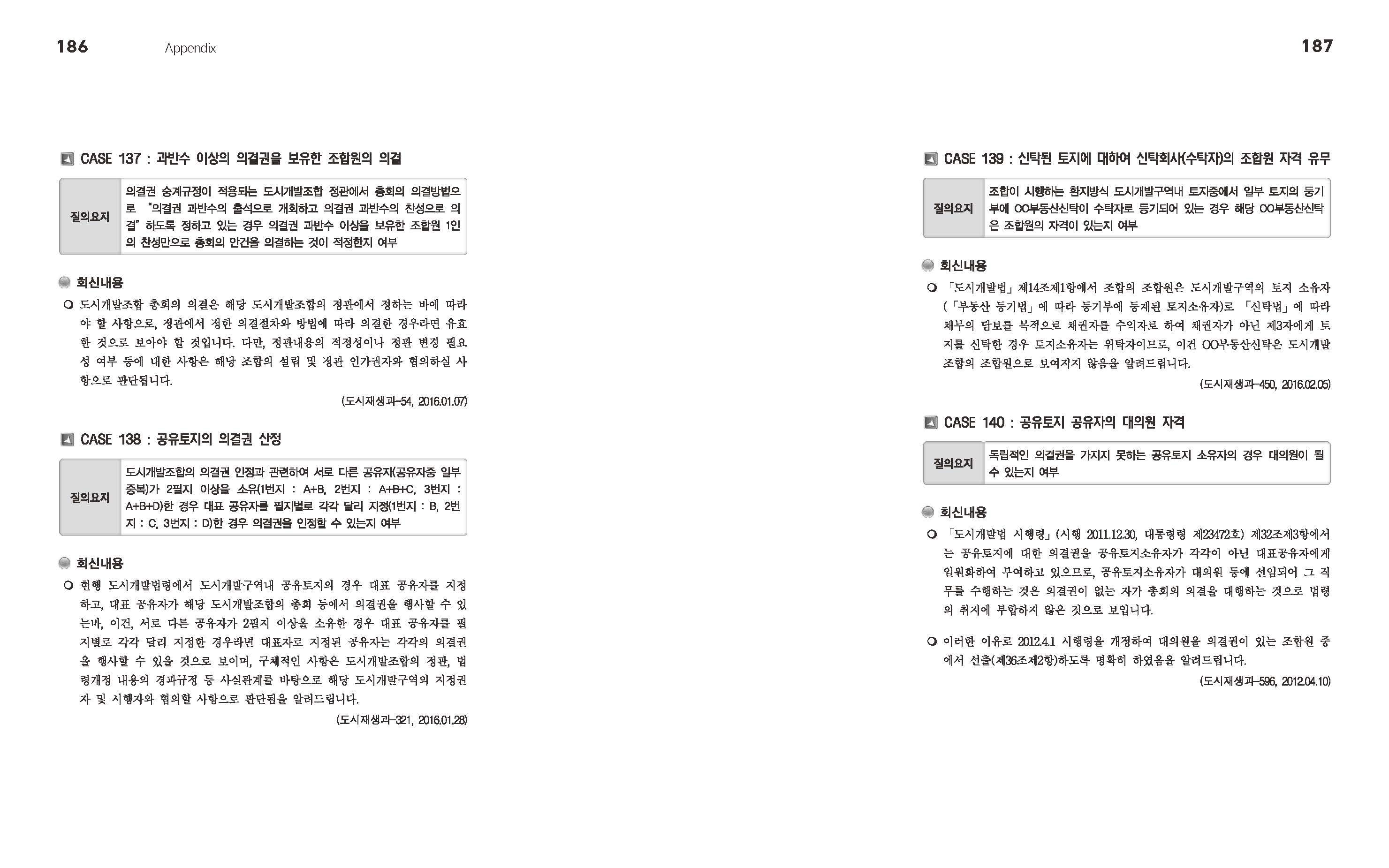 | [부록] 도시개발법령 관련 주요질의ㆍ회신 사례집 Part2 2018.06 (0) | 2022.12.02 |