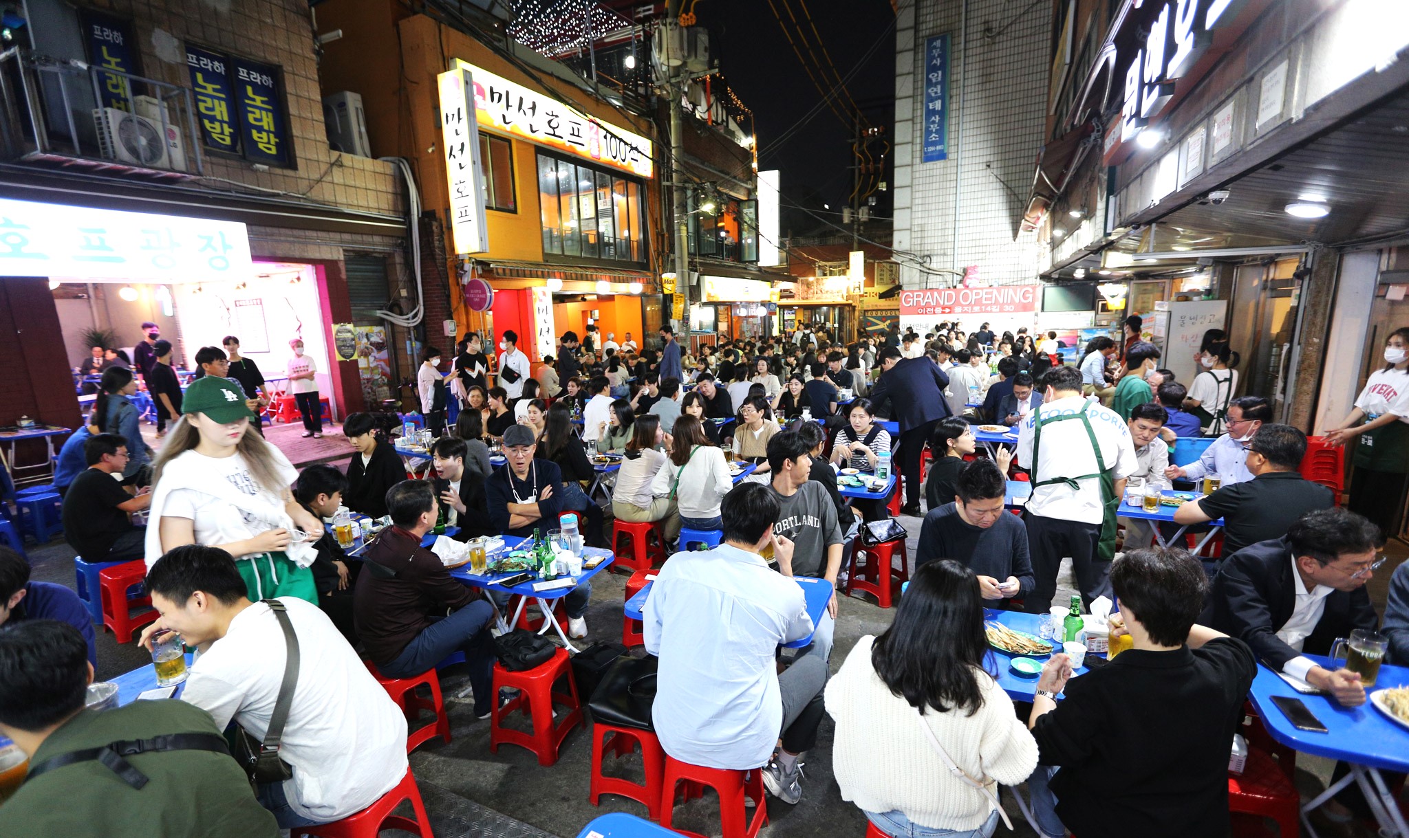 생맥주 열풍을 타고 골목에 그만그만한 가게들이 들어차기 시작한다. 을지OB베어와 뮌헨호프의 존재는 여러 생맥주 가게를 이 골목으로 끌어들인 힘이었다. 서울 중구청은 조례로 ‘차 없는 거리’를 만들어 옥외 영업이 가능하도록 지원한다. 가득 펼쳐진 좌판 덕분에 골목에 새로운 문화가 꽃핀다. 덕분에 노가리 골목은 입소문을 타고 대낮은 물론 늦은 밤까지 환히 불 밝힐 수 있었다.