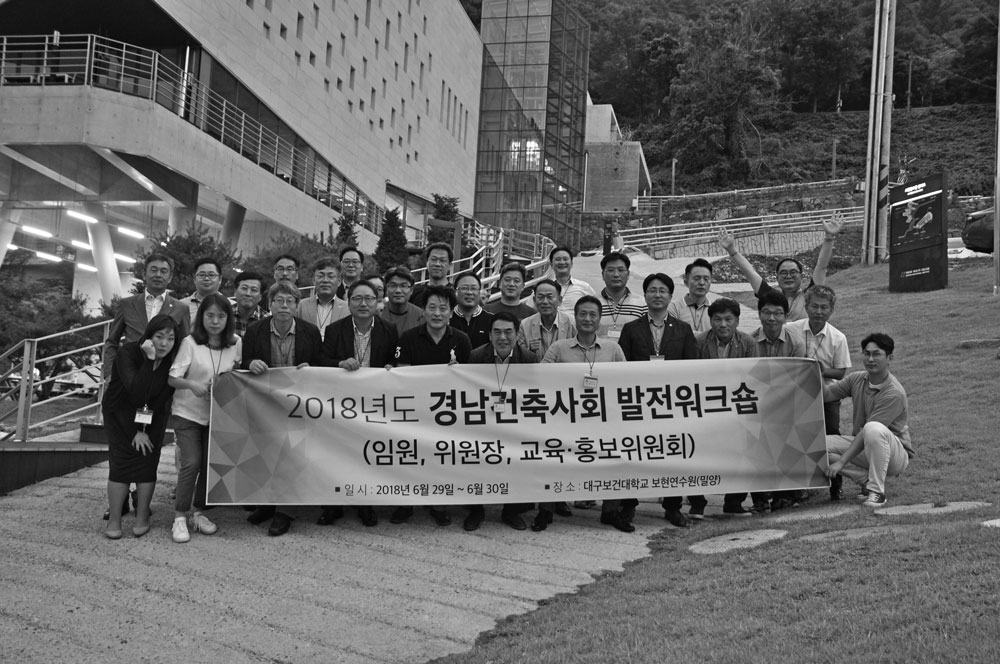 경상남도건축사회 발전워크숍이 6월 29일부터 30일까지 이틀간 개최됐다. 행사는 밀양의 대구보건대학교 보현연수원 에서 진행됐으며, 경상남도건축사회 임원, 위원장 등을 비롯해 30여 명이 참석해 건축사회의 발전방향을 모색하고 2018 년 사업계획 실천을 다짐했다.